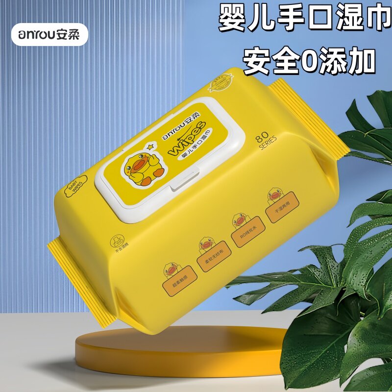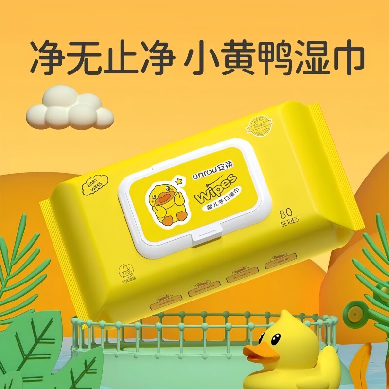 小黄鸭湿巾抽取式带盖随身0添加手口屁专用清洁擦脸湿巾便携外出