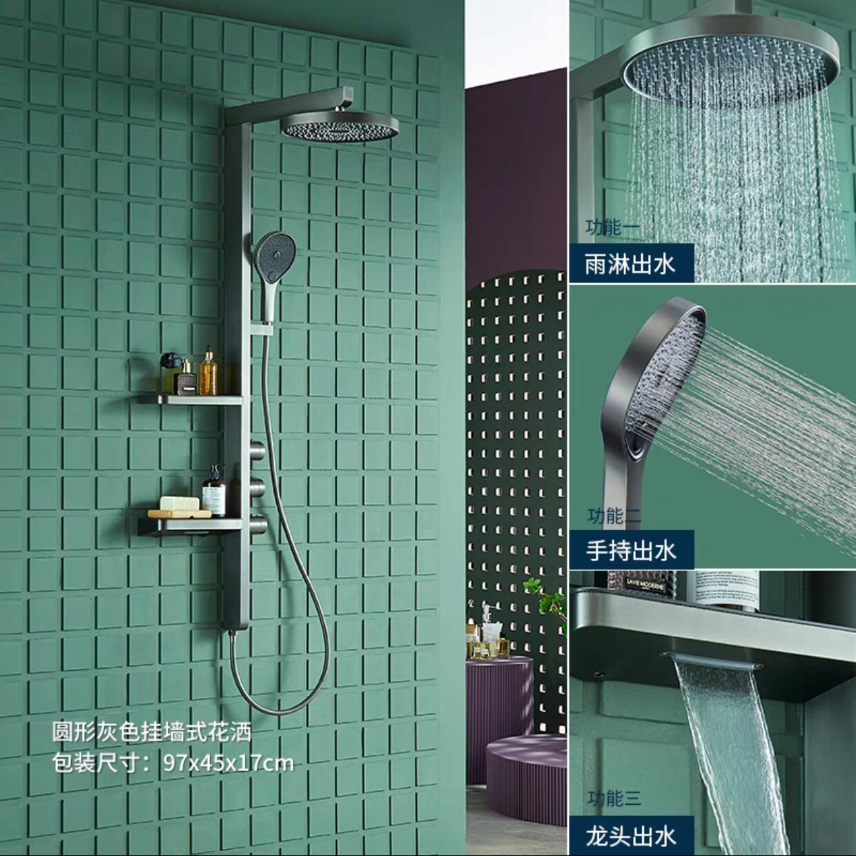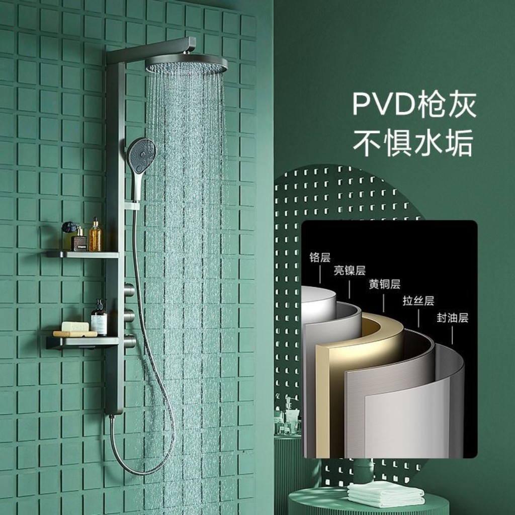 淘宝裕韵家装建材,极简天梯全铜淋浴花洒套装家用增压顶喷嵌入式铜主体浴室沐浴器