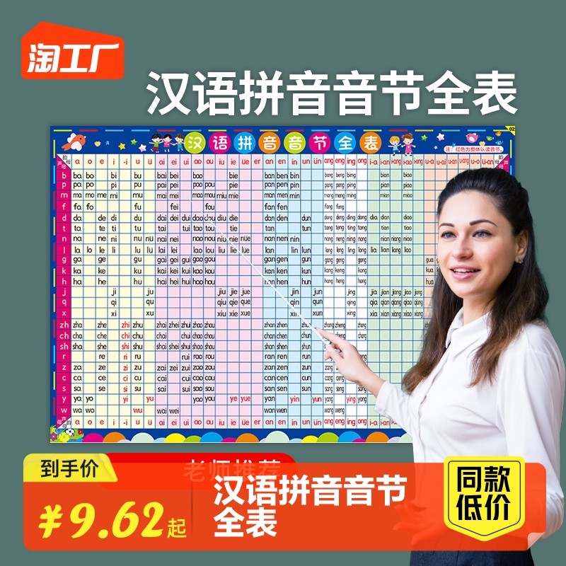 天猫天天特卖工厂店,小学汉语拼音字母表挂图墙贴一年级声母韵母音节全表拼读学习神器
