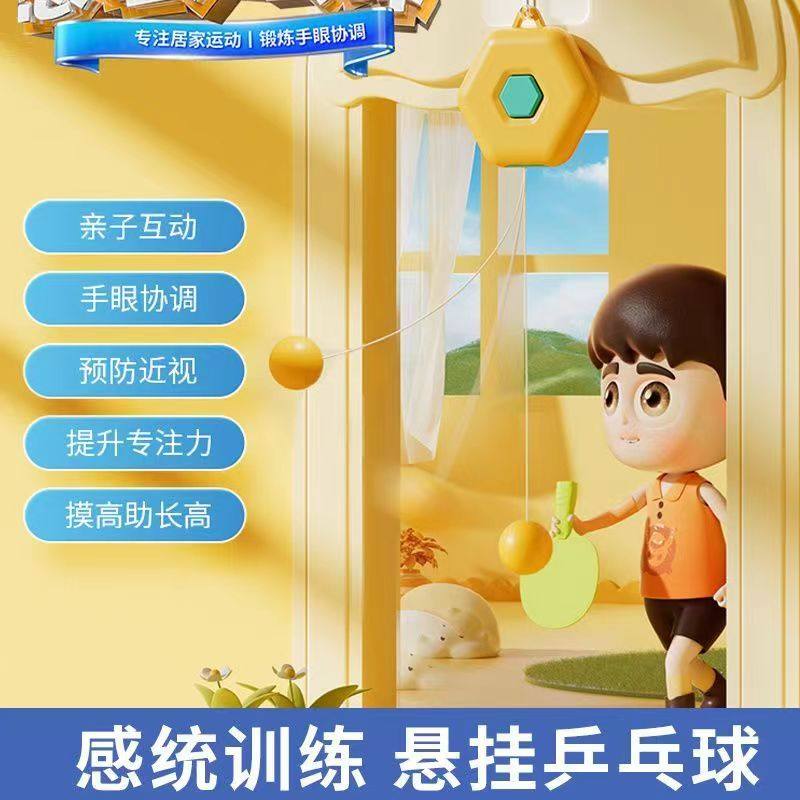 自动收线悬挂乒乓球训练器家用门框悬挂式儿童球拍健身玩具练球器