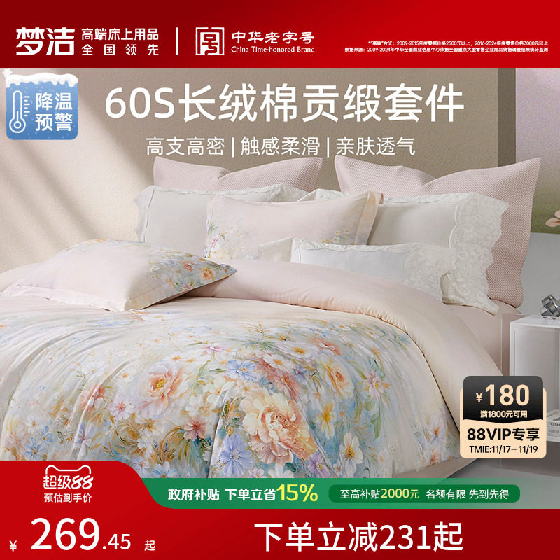 梦洁家纺60支长绒棉四件套贡缎券后价¥378梦洁旗舰店 4 月前