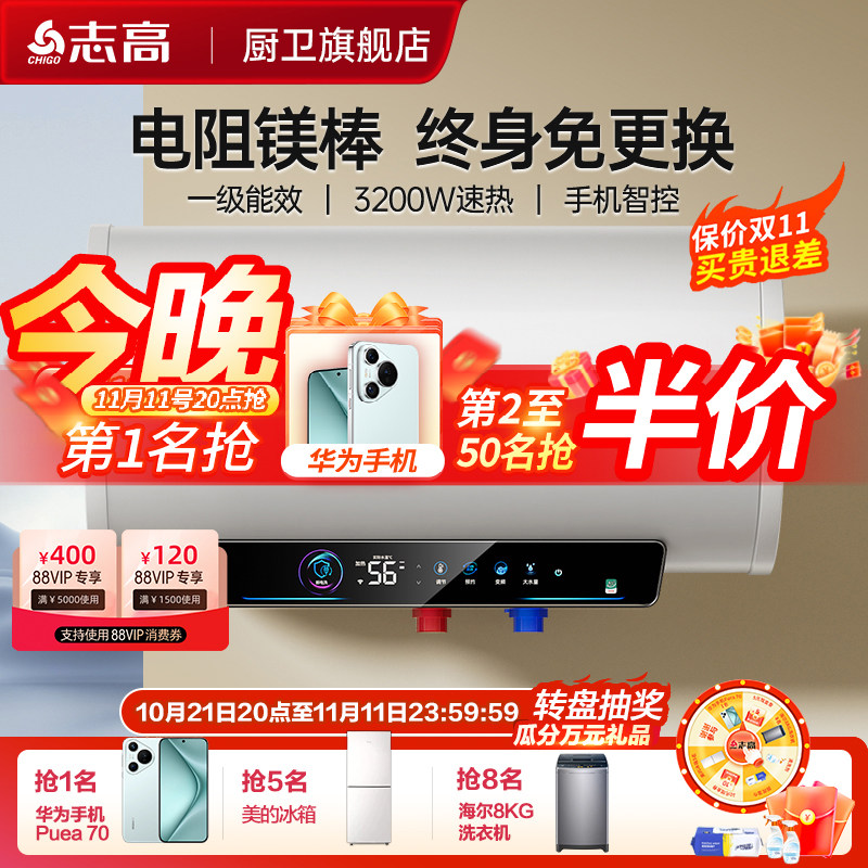 天猫志高厨卫旗舰店,志高电热水器一级能效上门安装,3200W速热 一级能效 上门安装 手机远程智控