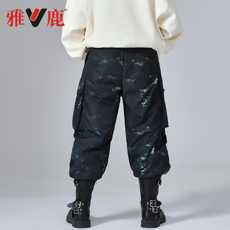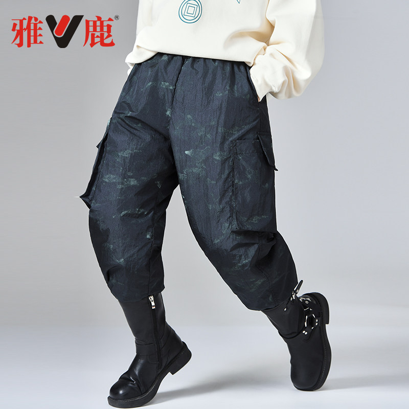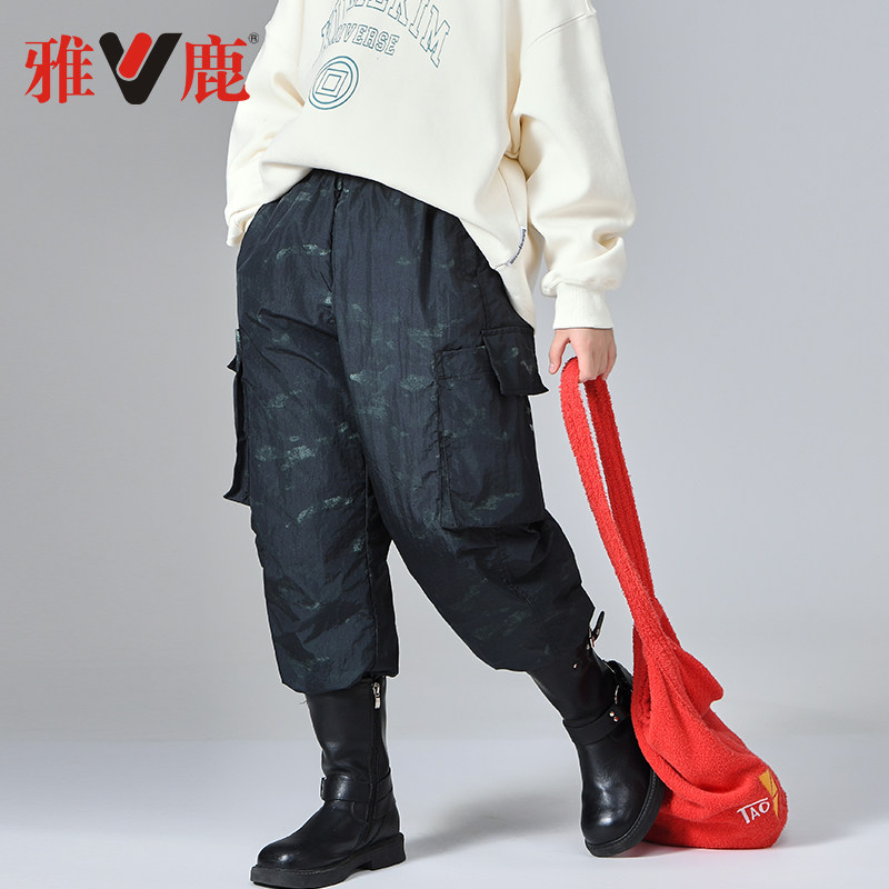 雅鹿儿童羽绒裤男童女童冬季加厚宝宝中大童迷彩外穿工装裤子
