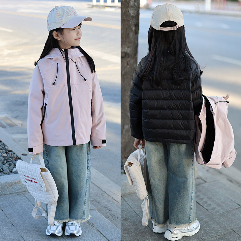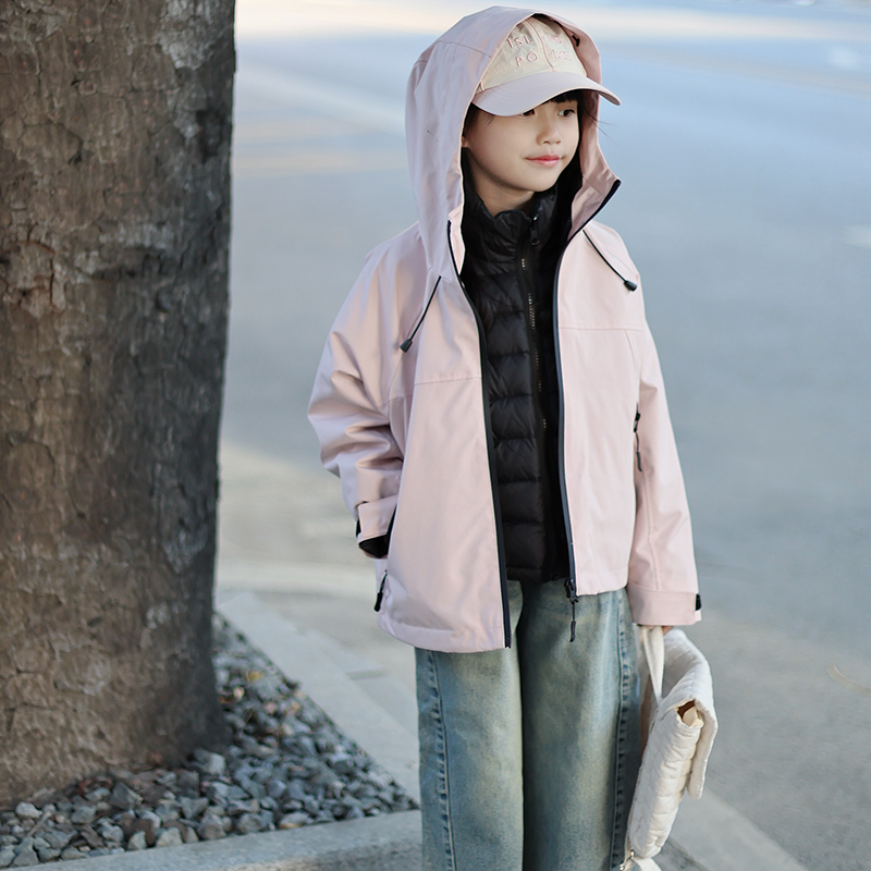 淘宝希小希童装,男女童冲锋衣三合一内搭可拆卸羽绒内胆防风防水御寒运动户外外套
