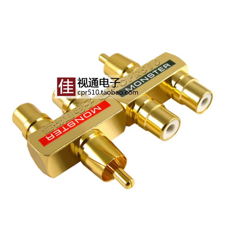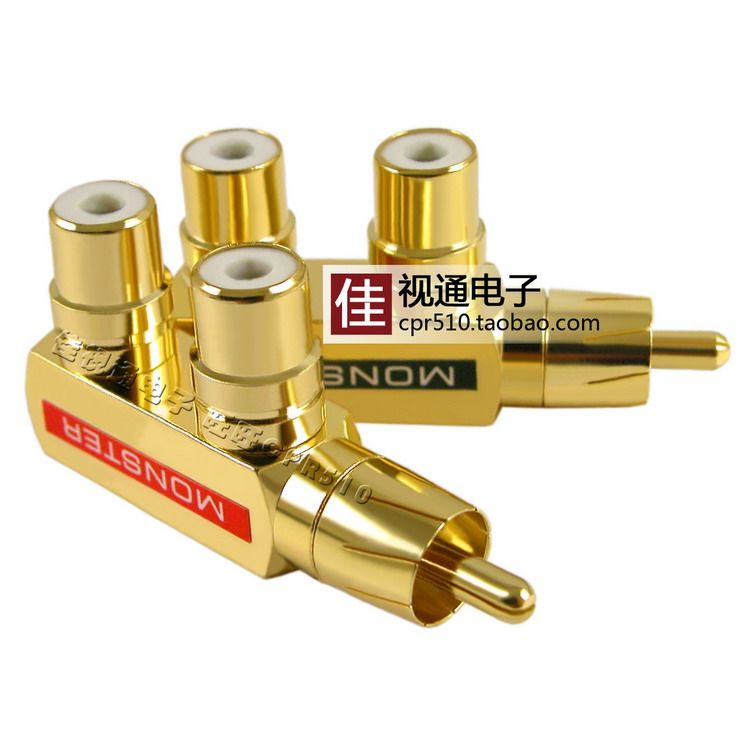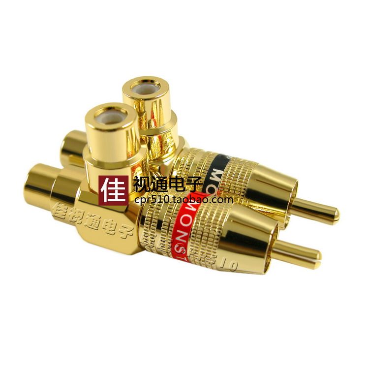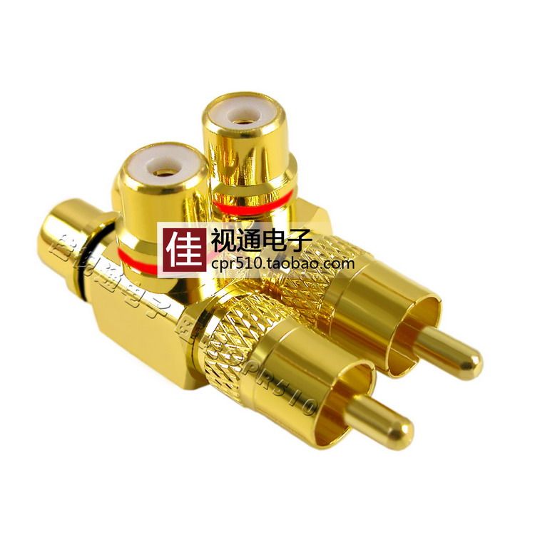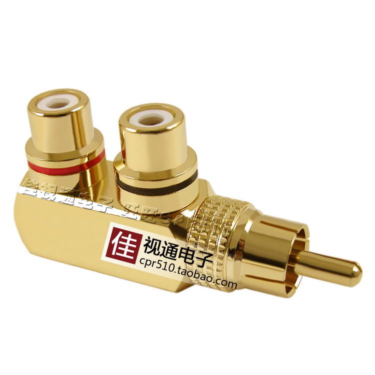 淘宝佳视通电子,纯铜镀金莲花rca头三通音视频线