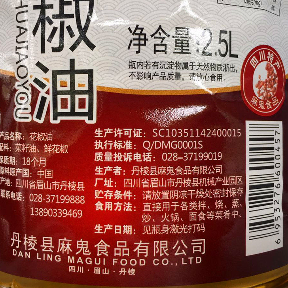 麻鬼花椒油2.5L正宗四川特麻鲜花椒油餐饮装商用凉拌菜米线麻油