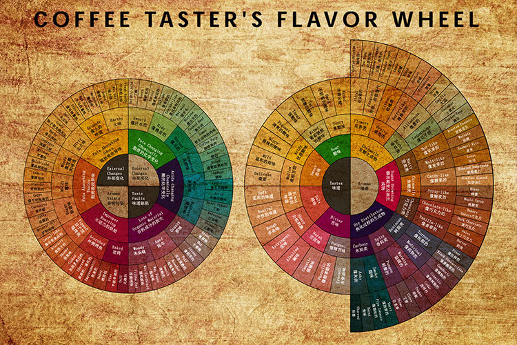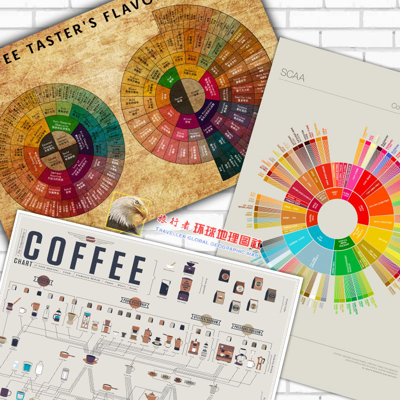超大复古咖啡风味轮咖啡指南个性海报画酒吧装饰咖啡厅巨幅装饰画