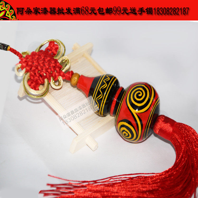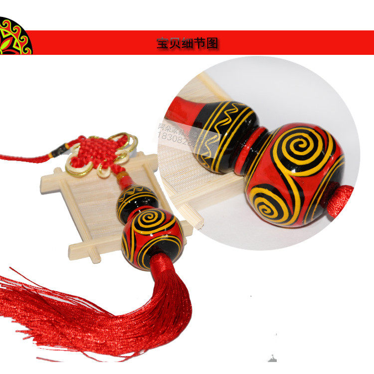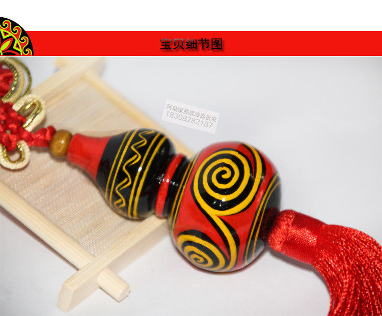 淘宝大凉山阿朵家民族特色用品,凉山彝族葫芦车饰实木装饰中国结