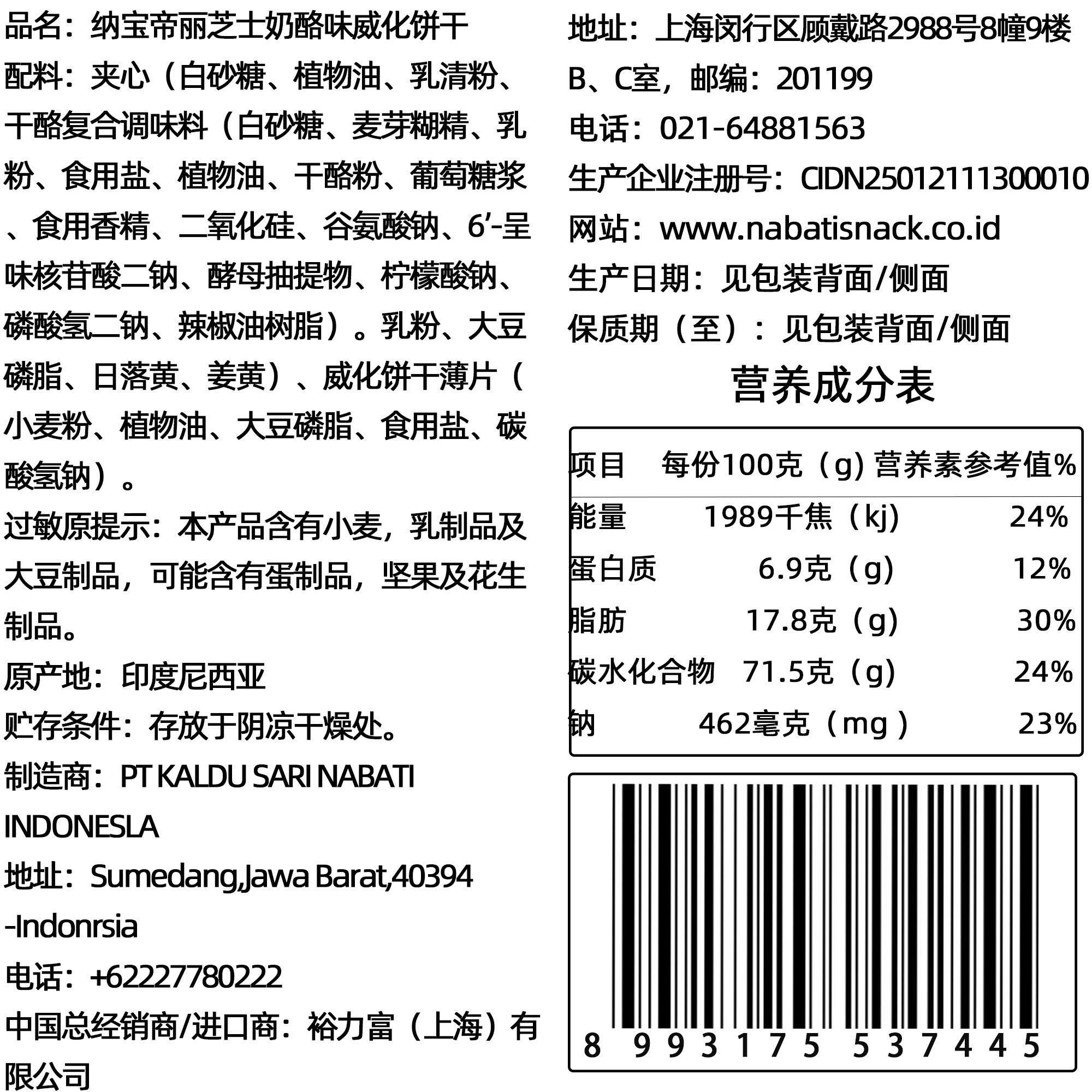 纳宝帝丽芝士丽奶酪味巧克味威化饼干56g*5包印尼进口网红夹心饼