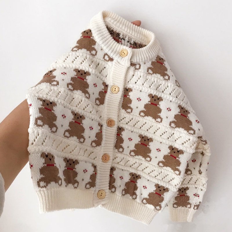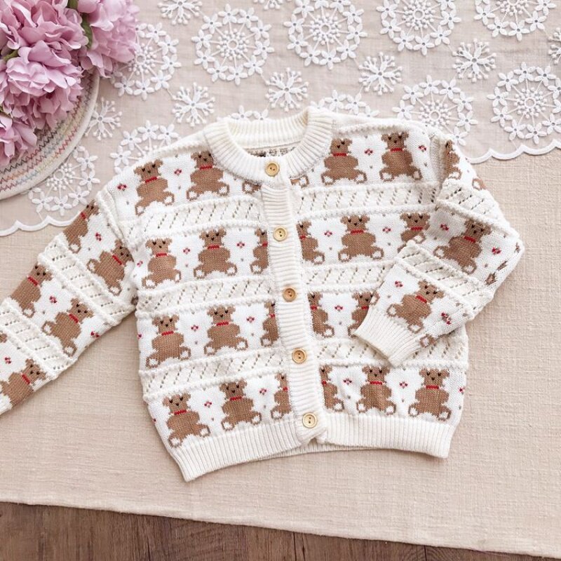 淘宝七月baby童装小铺,童装新款萌小熊~柔软提花复古毛衣