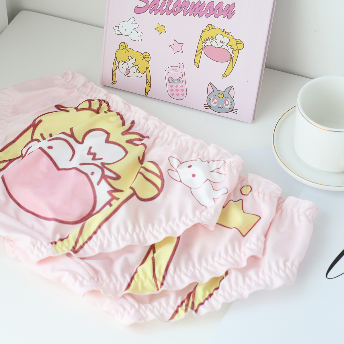 淘宝ZT Style私房,日系中腰Q版美少女内裤可爱甜美木耳边包臀纯棉裆学生三角面包裤