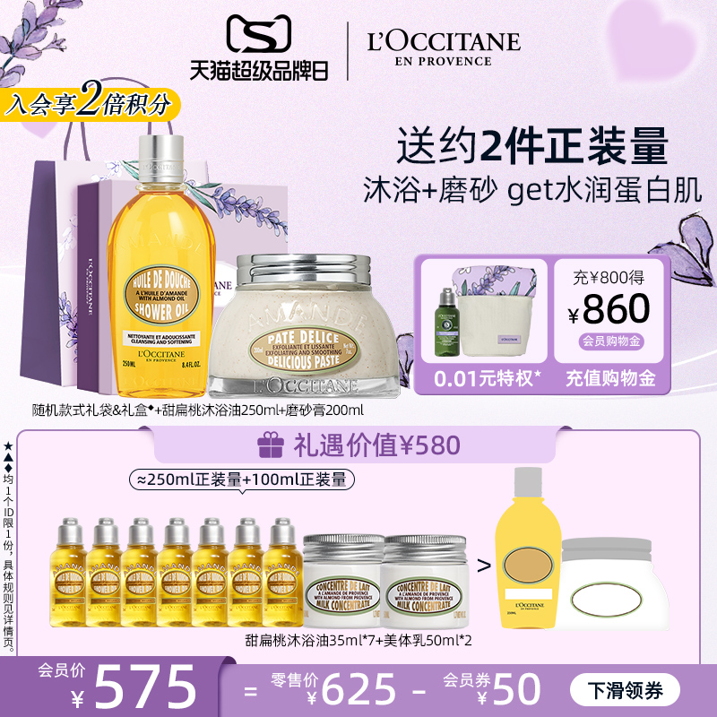 天猫L’OCCITANE欧舒丹官方旗舰店,欧舒丹甜扁桃套装磨砂膏沐浴油