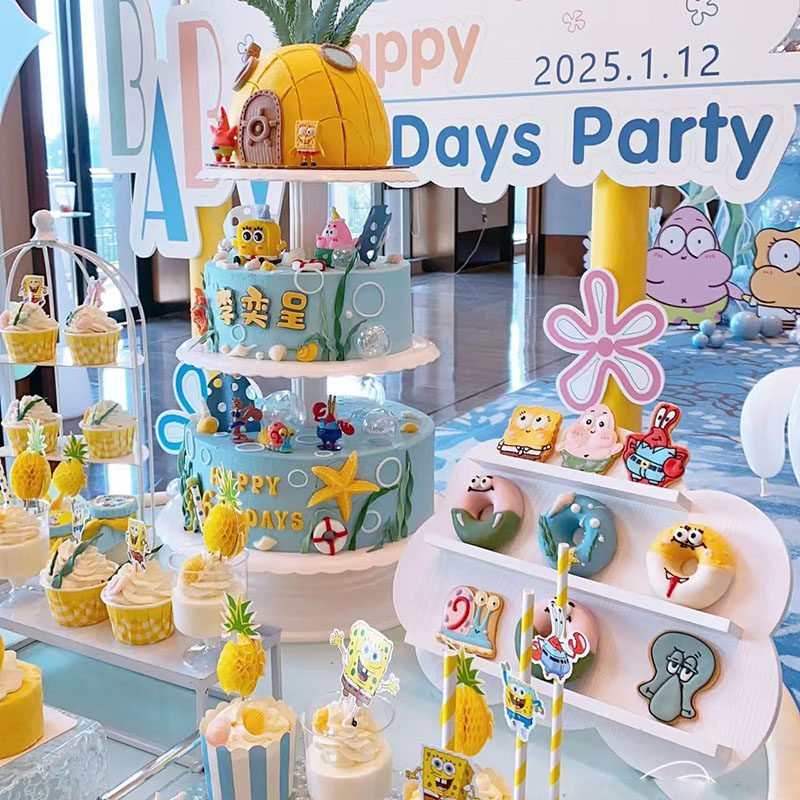 淘宝遇见你烘焙,卡通海绵宝宝派大星主题生日蛋糕装饰摆件儿童周岁甜品台装扮插件