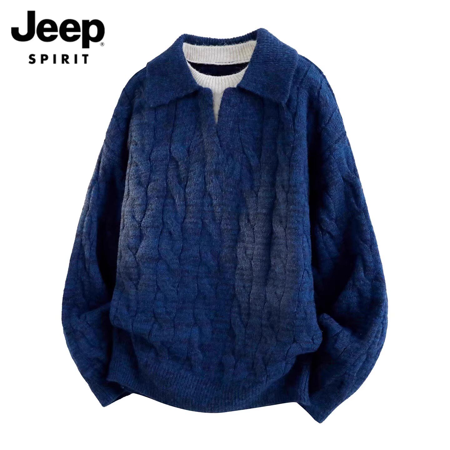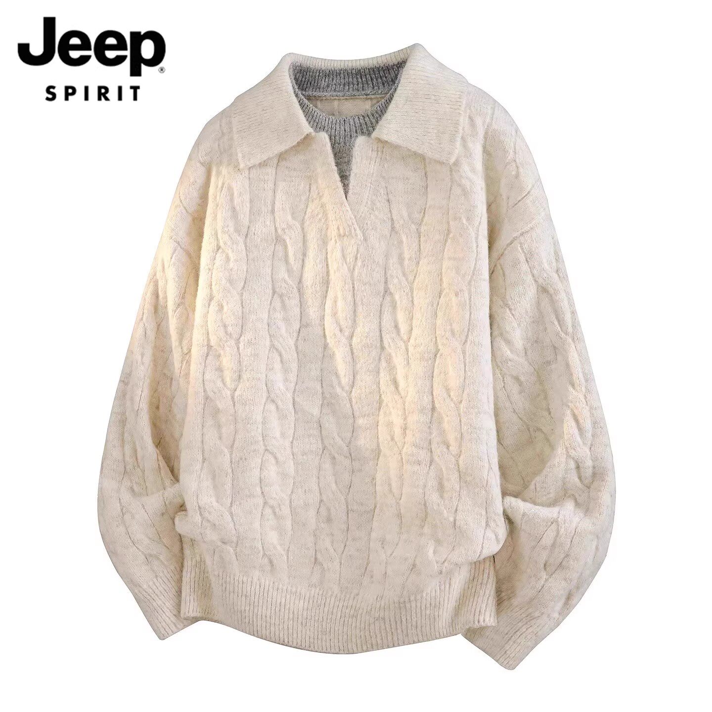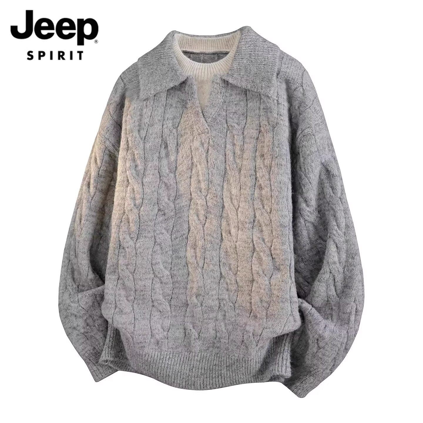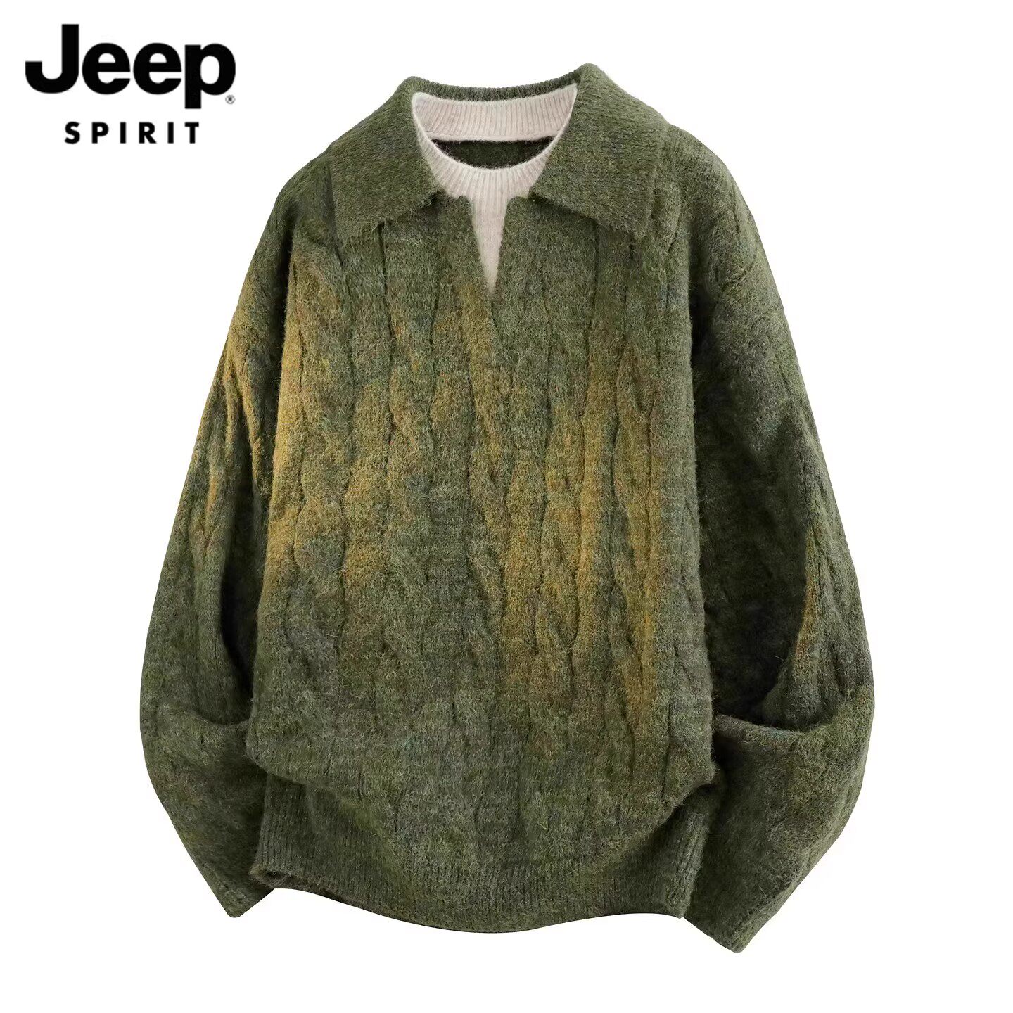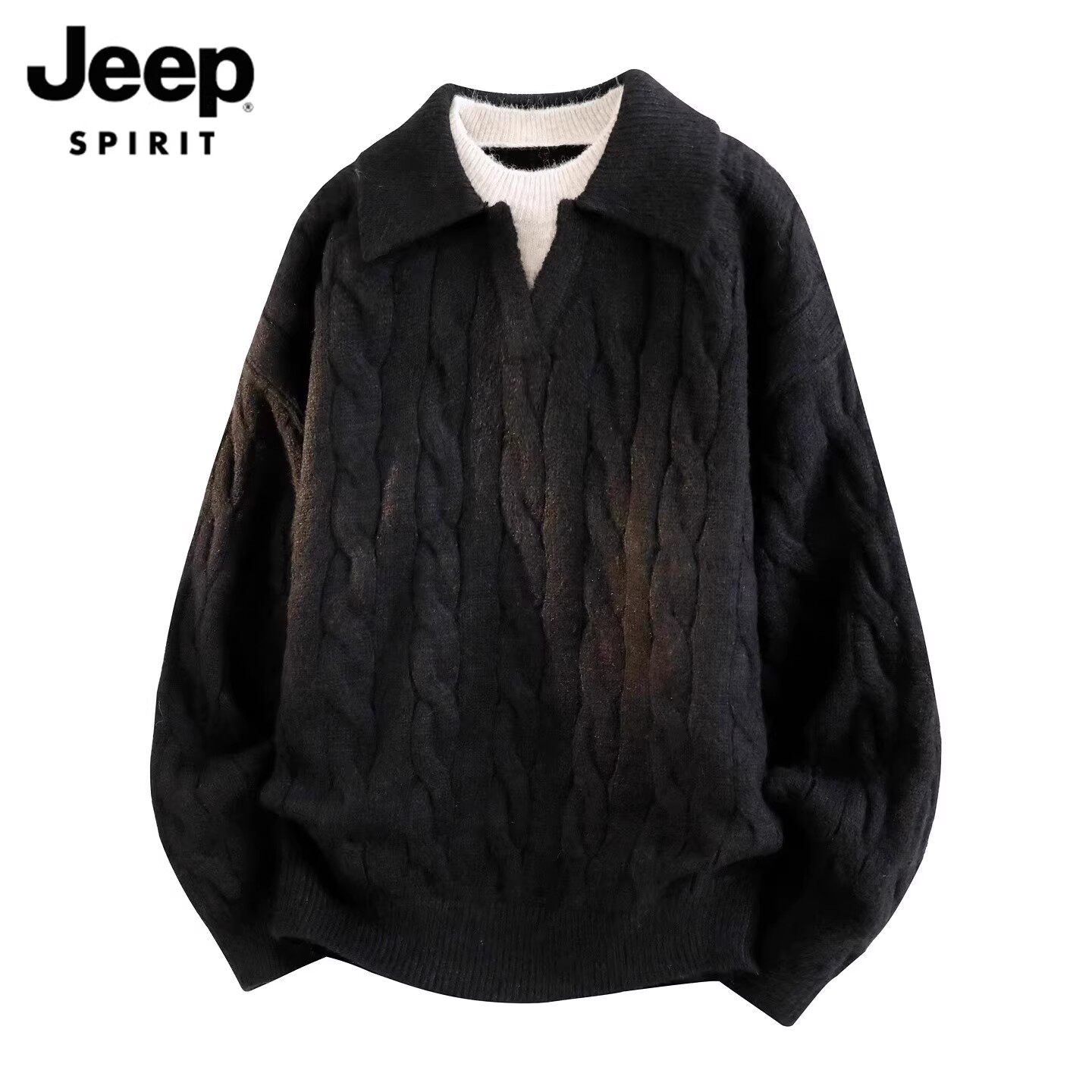 淘宝JEEP SPIRIT男装潮牌服饰,吉普翻领毛衣男假两件休闲针织衫