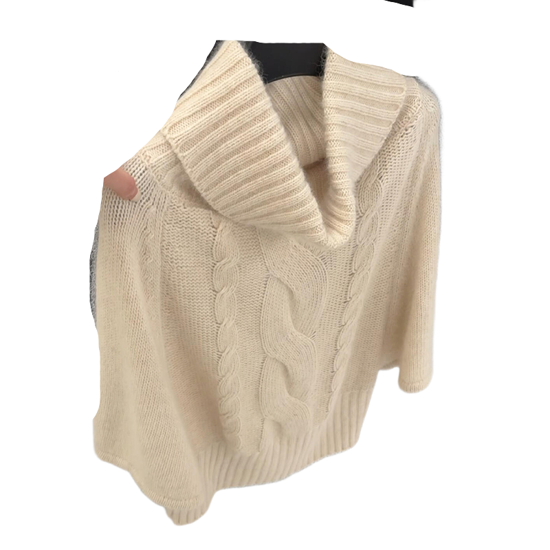 淘宝雙囍品牌自营店,米杏色高领斗篷式五分袖毛衣女冬