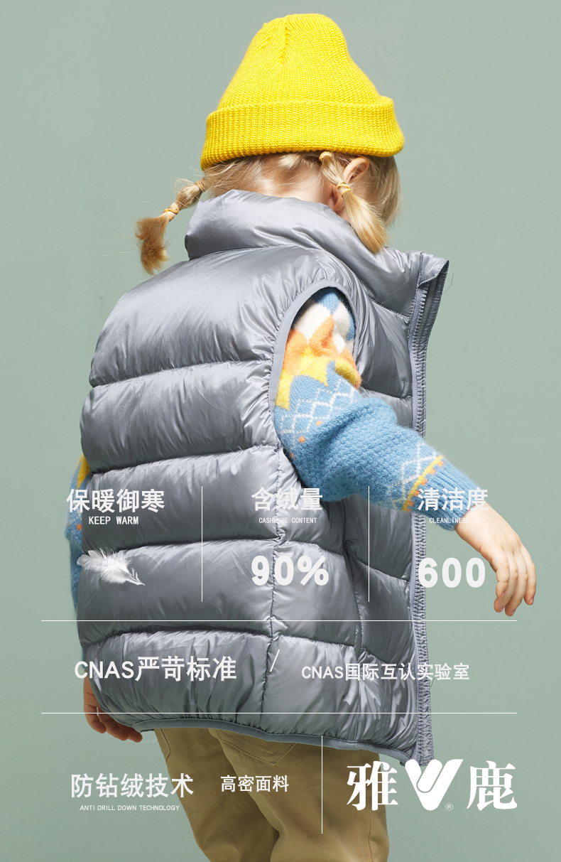 天猫雅鹿乐于淼专卖店,雅鹿中大童冬季加厚洋气羽绒马甲,雅鹿正品,90白鸭绒