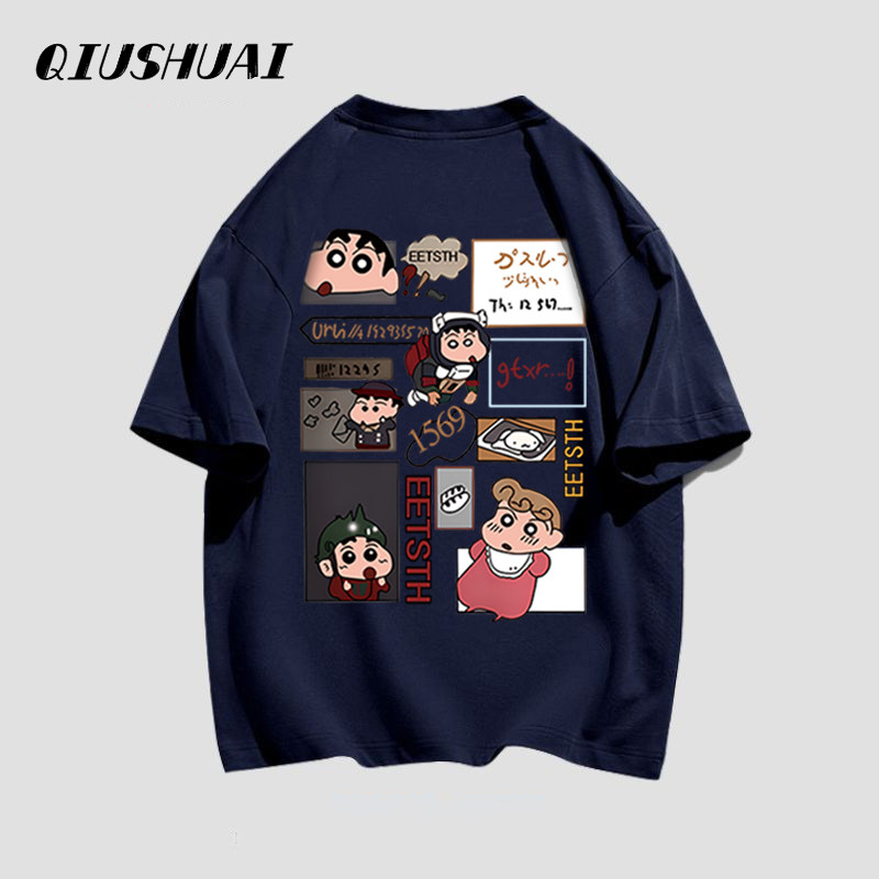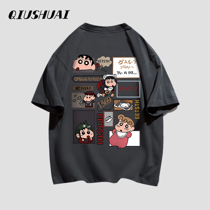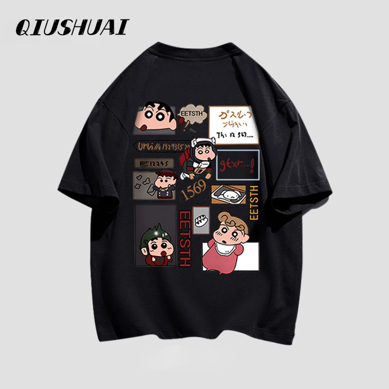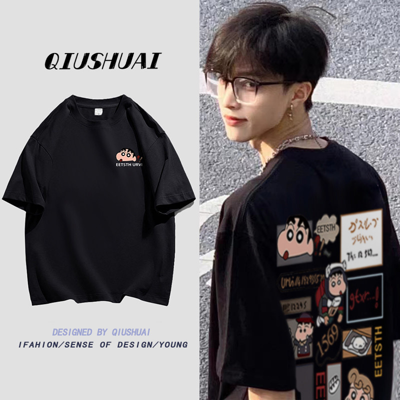 重磅纯棉t恤男夏新款日系潮牌蜡笔小新动漫潮男短袖oversize上衣