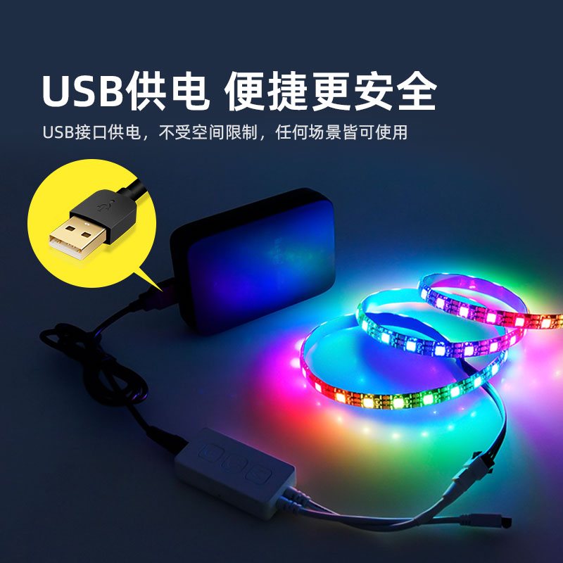 RGB灯带装饰自粘电脑桌面电竞氛围灯电视usb5v声控幻彩led灯条
