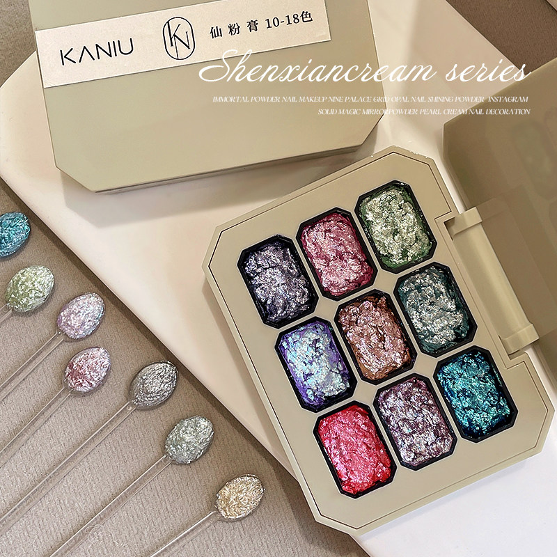 淘宝卡妞美甲,美甲仙气彩色立体九宫格仙粉膏
