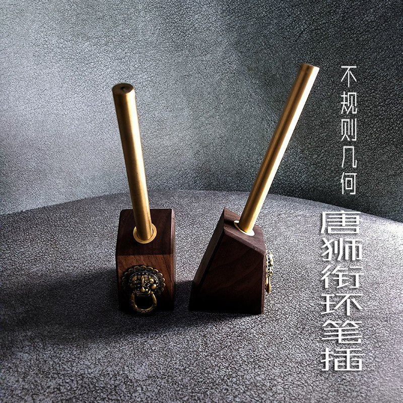淘宝253468910299602616,原创黑胡桃木几何不规则笔插笔座桌面办公摆件斜插式笔架创意笔筒