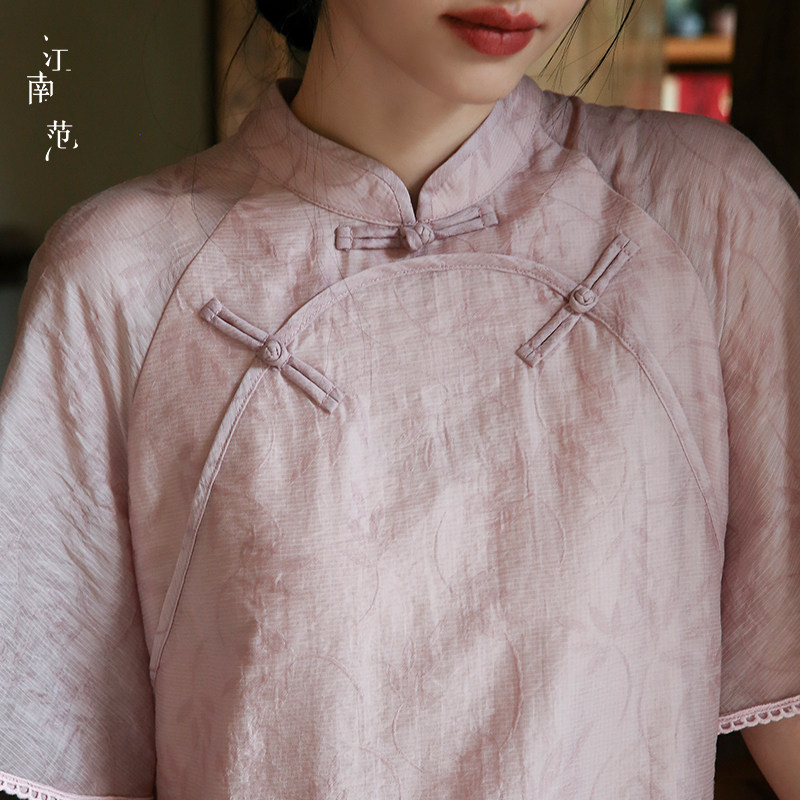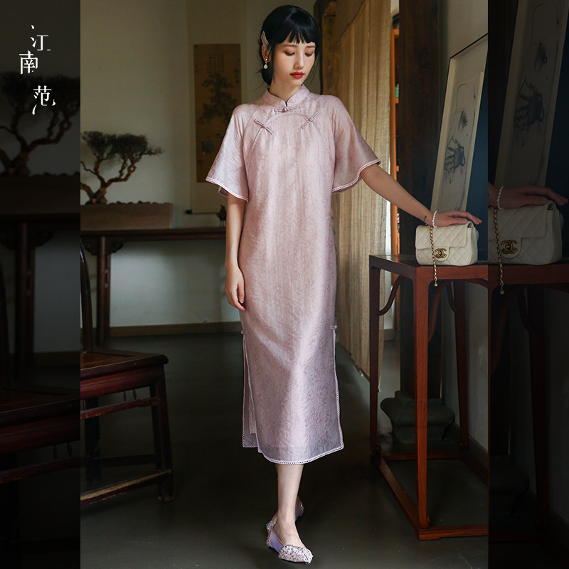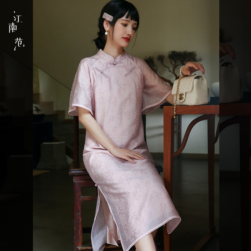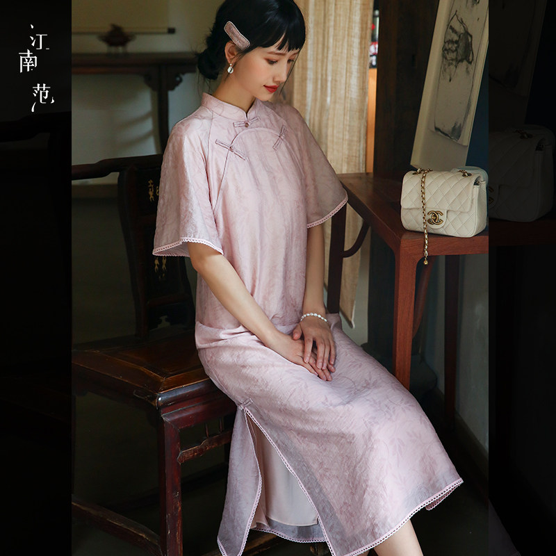 淘宝江南范JNF,江南粉色低领旗袍年轻款日常
