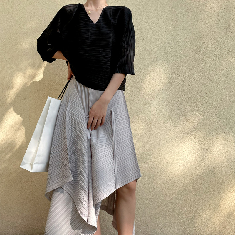 淘宝德国信村思进口方舰店,KFBOSZI.德国/ 通勤时尚高腰中长裙休闲层次褶皱半身裙女