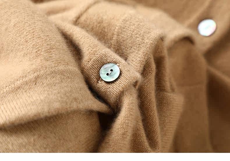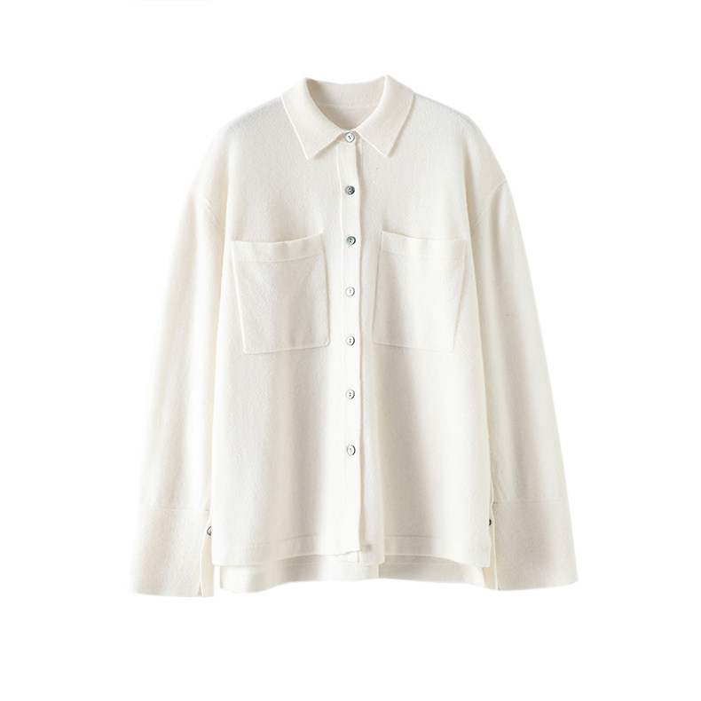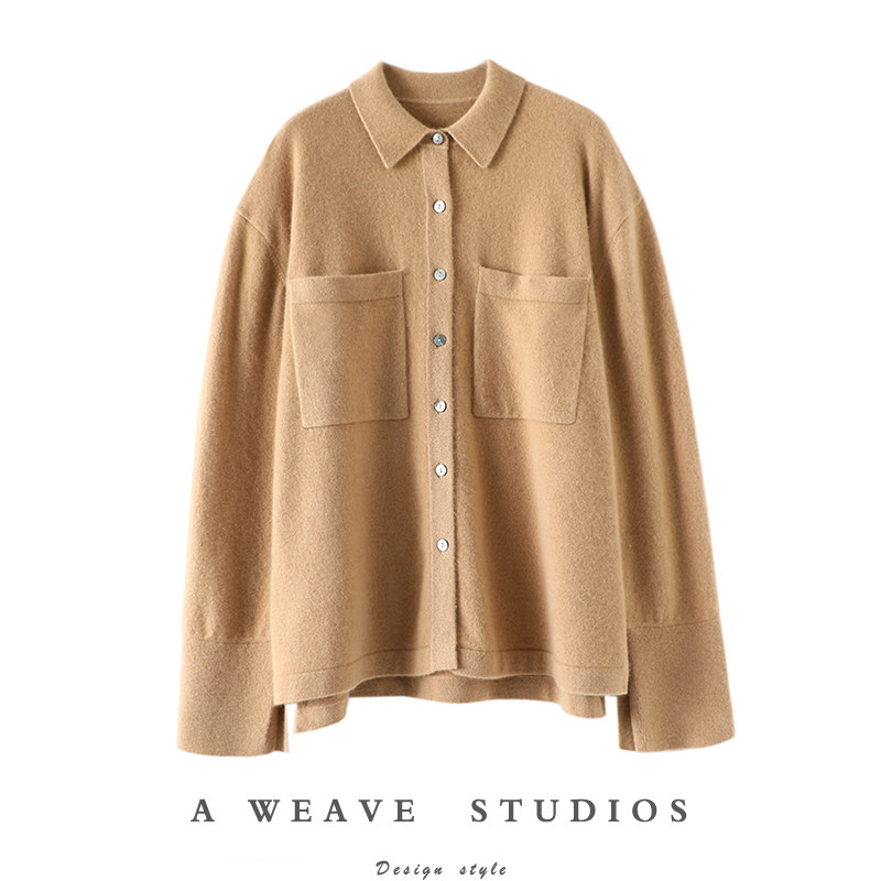 自信感爆棚!口袋排扣袖衬衫式羊绒开衫纯羊绒毛衣女宽松秋冬外套