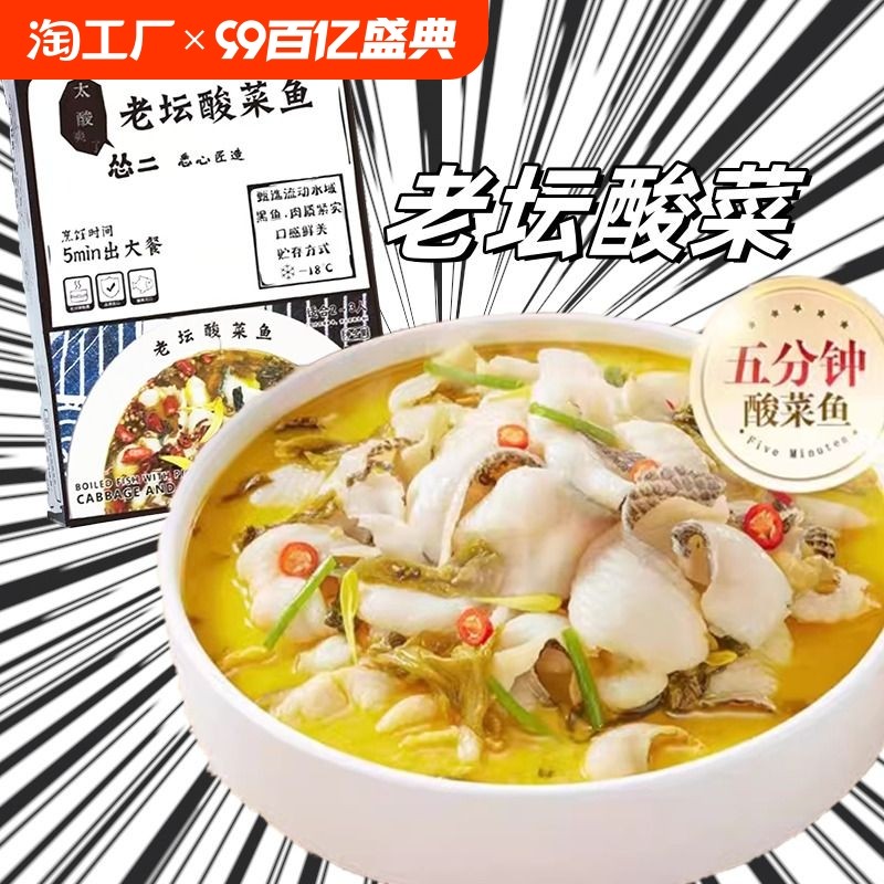 天猫淘工厂美妆直营,怂二酸菜老坛酸菜鱼520g上班族半成品速食预热菜预制菜新鲜黑鱼!,潮流精品,品质保证