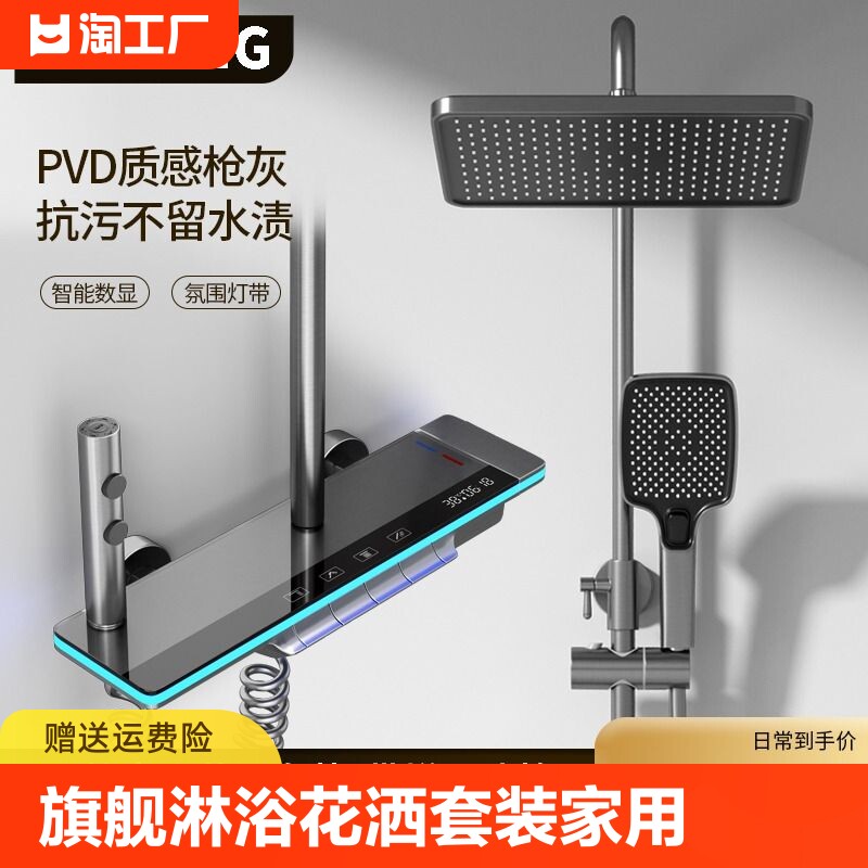 天猫天天特卖工厂店,旗舰淋浴花洒套装家用全铜洗澡增压除垢恒温数显氛围灯淋浴雨林器,潮流精品,品质保证