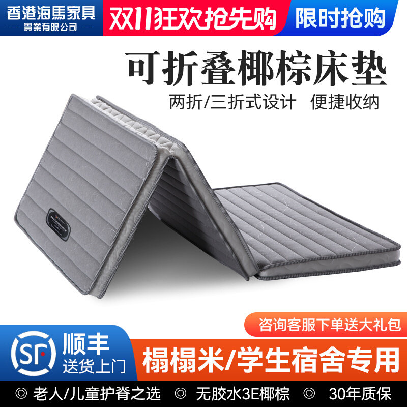 淘宝香港家具床垫专售,海马飞雪榻榻米床垫1.2m学生宿舍床垫可折叠乳胶椰棕床垫硬垫定制