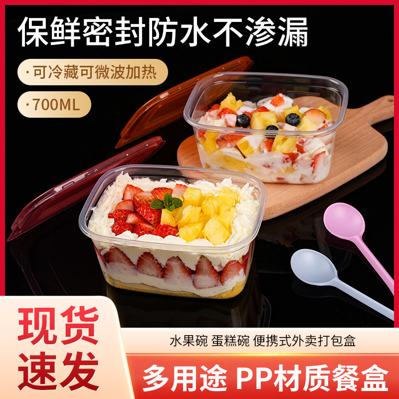 淘宝潍坊超凡塑业有限公司,700ml 一次性水果捞盒子商用塑料带盖蛋糕盒打包外卖便当餐盒包邮