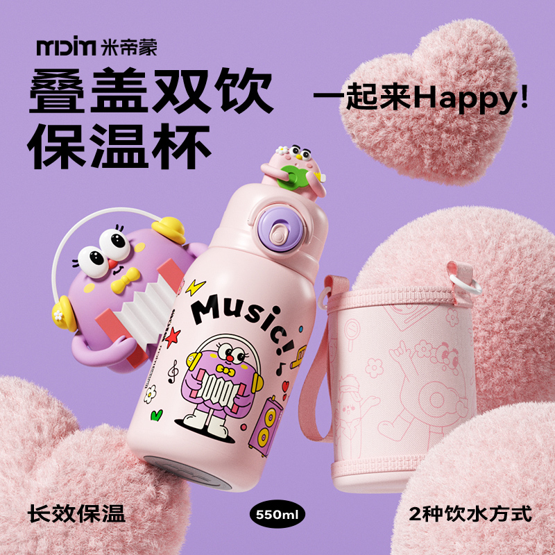 保温杯儿童水杯3岁以上2喝水家用牛奶杯外出吸管杯直饮水杯子两用