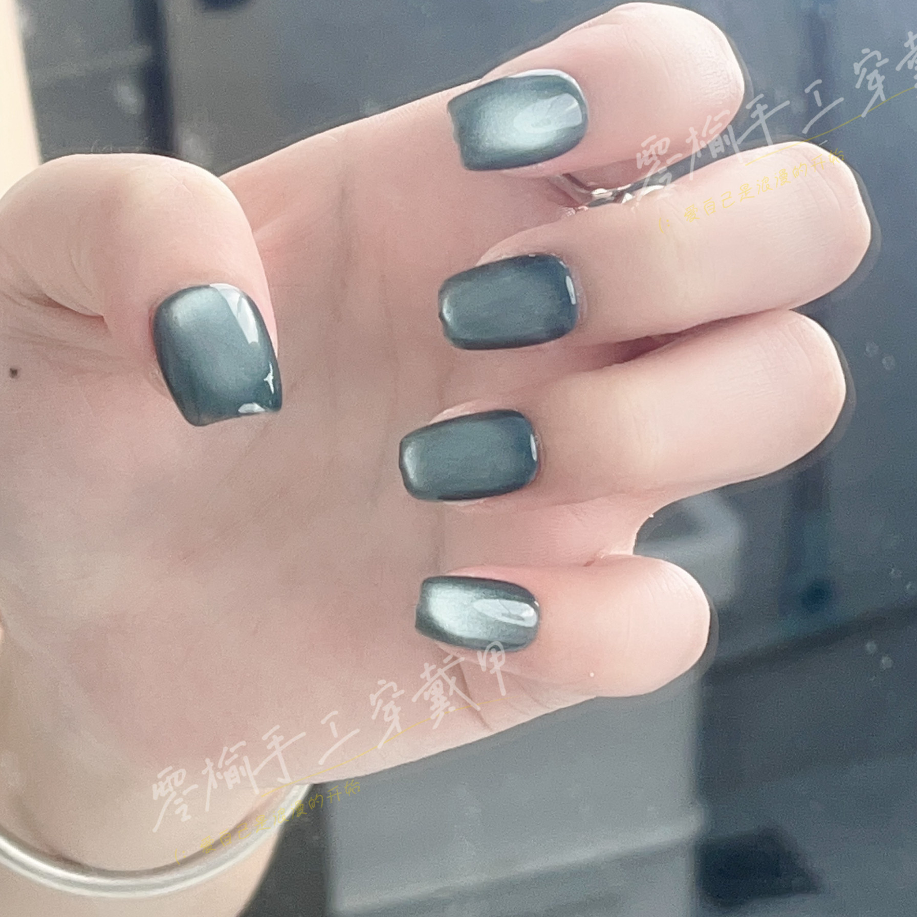 淘宝零榆手工穿戴甲,青雀-零榆手工穿戴甲杏仁中梯新款猫眼粉色甲油胶紫色穿戴甲