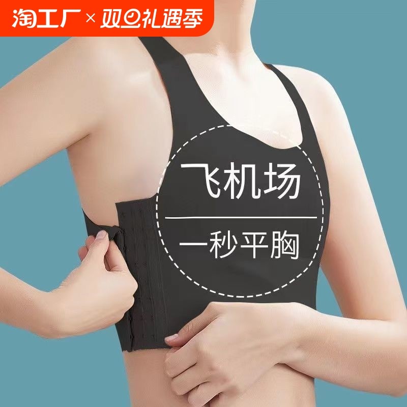 天猫淘工厂美妆直营,束胸内衣大胸显小无痕学生运动背心les神器帅t防震阶段固定平胸