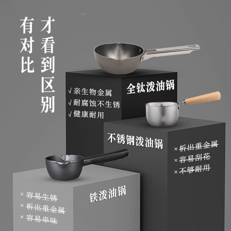 天猫4728780190707317298,卢记纯钛锅泼油锅热油小锅家用专用煎蛋饺神器淋油无涂层平底不粘