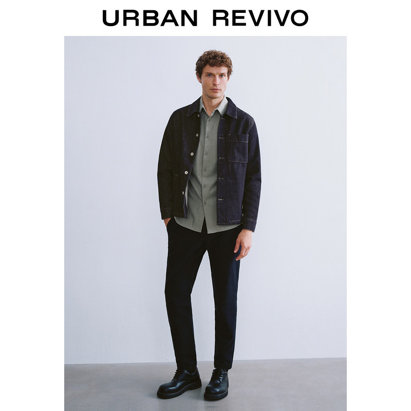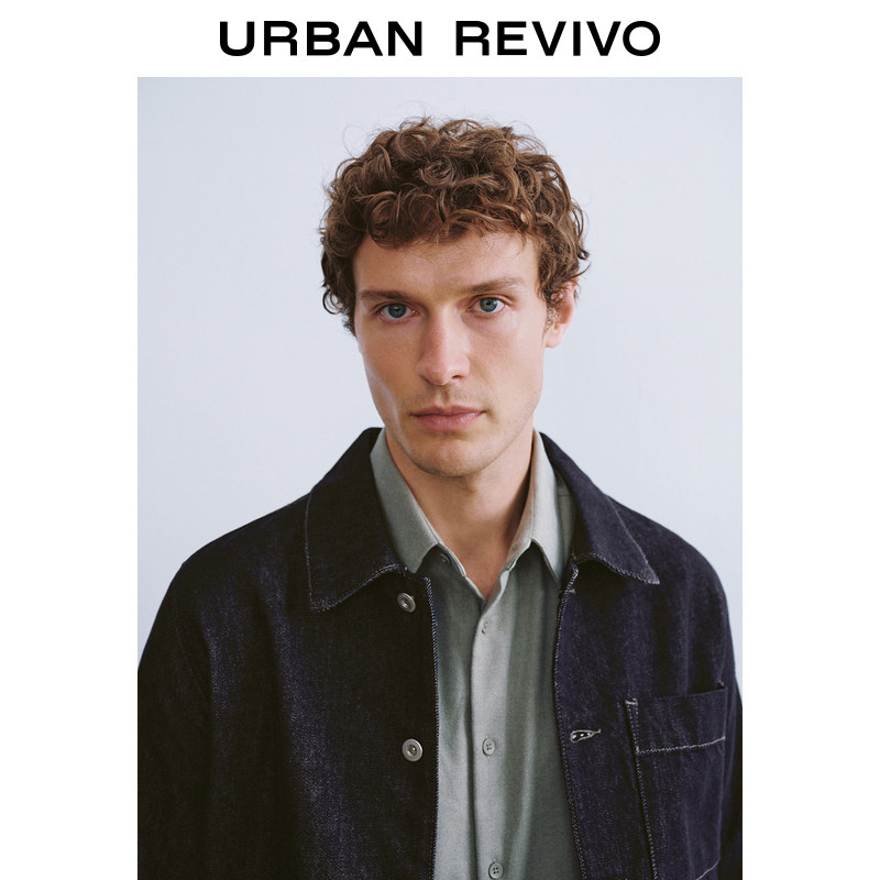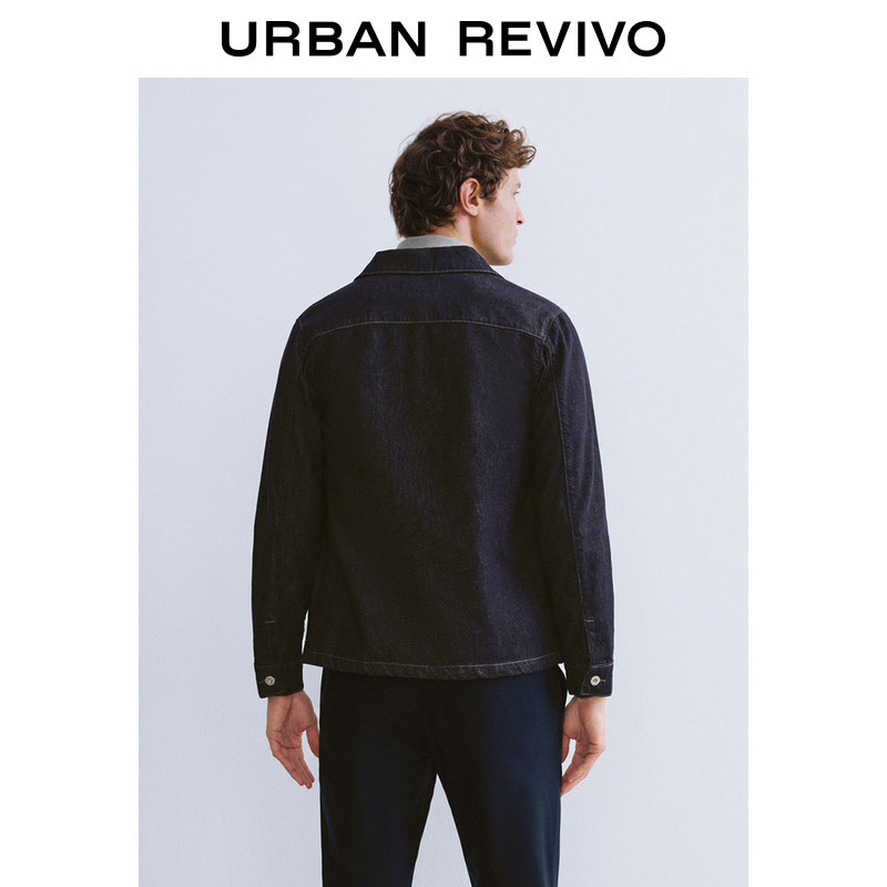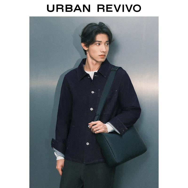 天猫UR官方旗舰店,UR2024冬季新款男装经典复古休闲百搭翻领牛仔外套UMU840051,复古洗水丹宁,实用多口袋,经典翻领造型