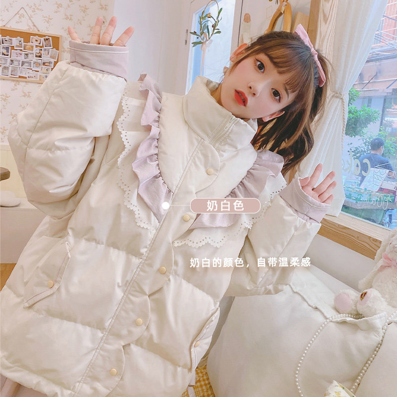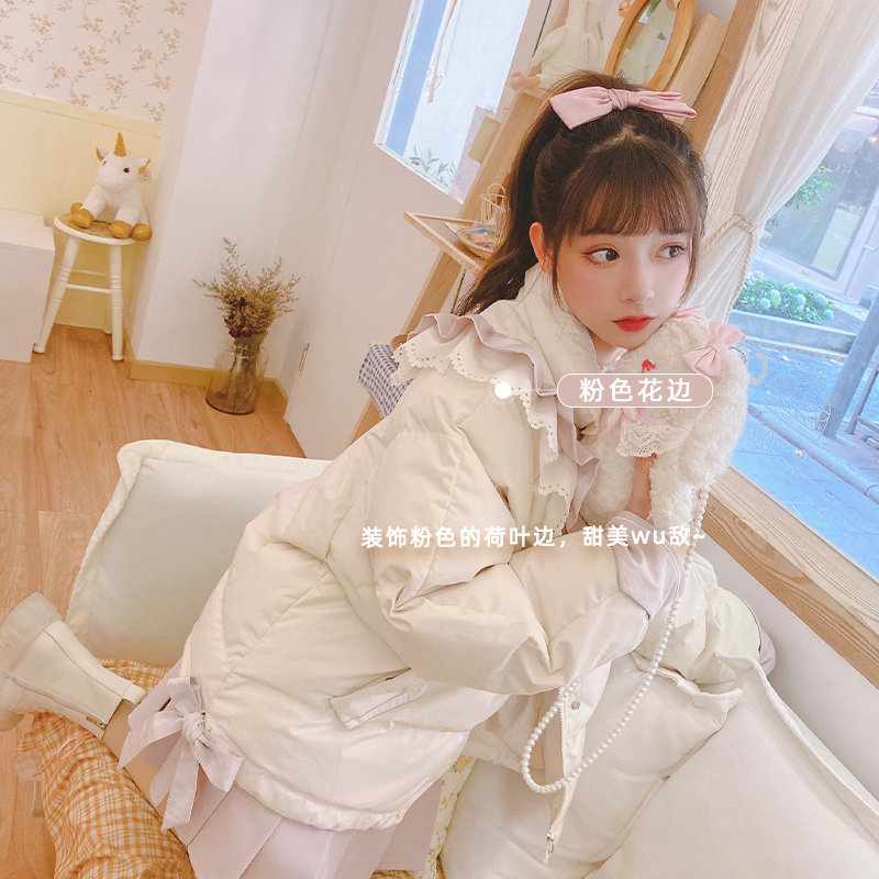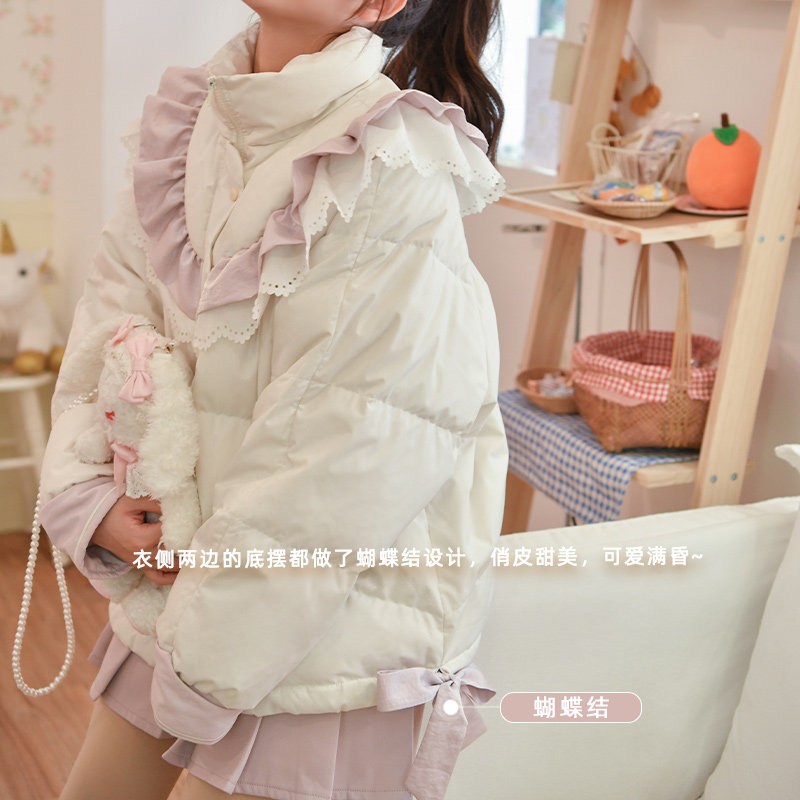 原创森女部落少女甜美风面包服90白鸭绒羽绒服设计感小众2022新款