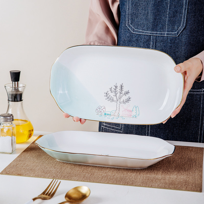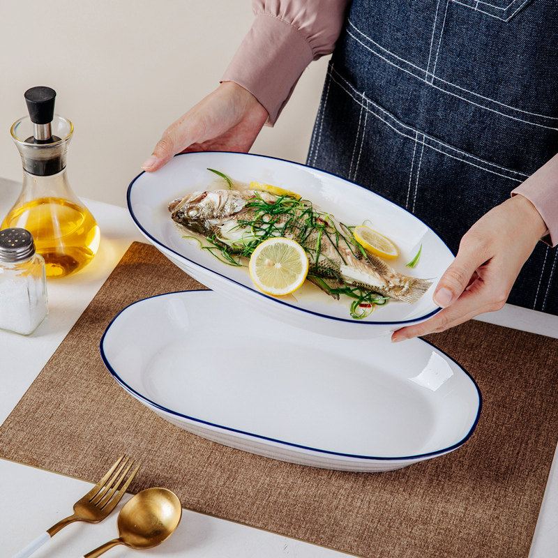 天猫歌莱茜旗舰店,家用陶瓷北欧式简约创意套装鱼盘子,健康高温陶瓷鱼盘 微波炉洗碗机适用