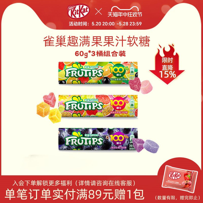 天猫kitkat雀巢奇巧旗舰店,KitKat/奇巧趣满果果汁软糖,100%果汁软糖水果糖0脂肪