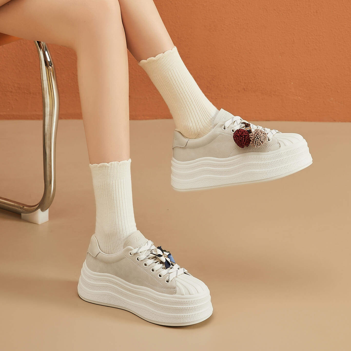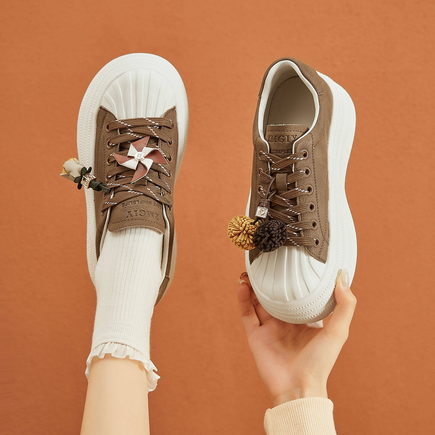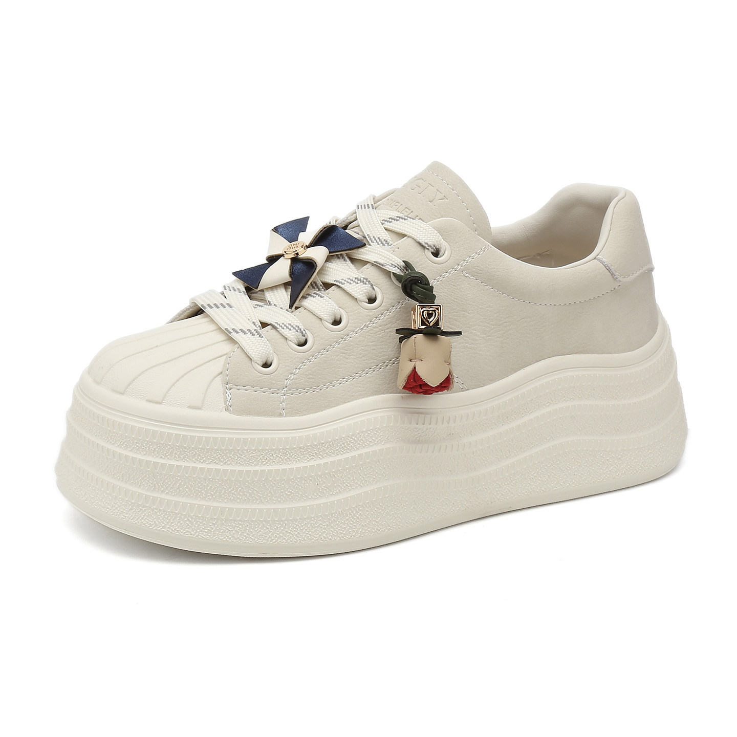 天猫1688官方工厂,厚底增高6CM春秋小白鞋女贝壳头系带休闲板鞋百搭软底俏皮小个子