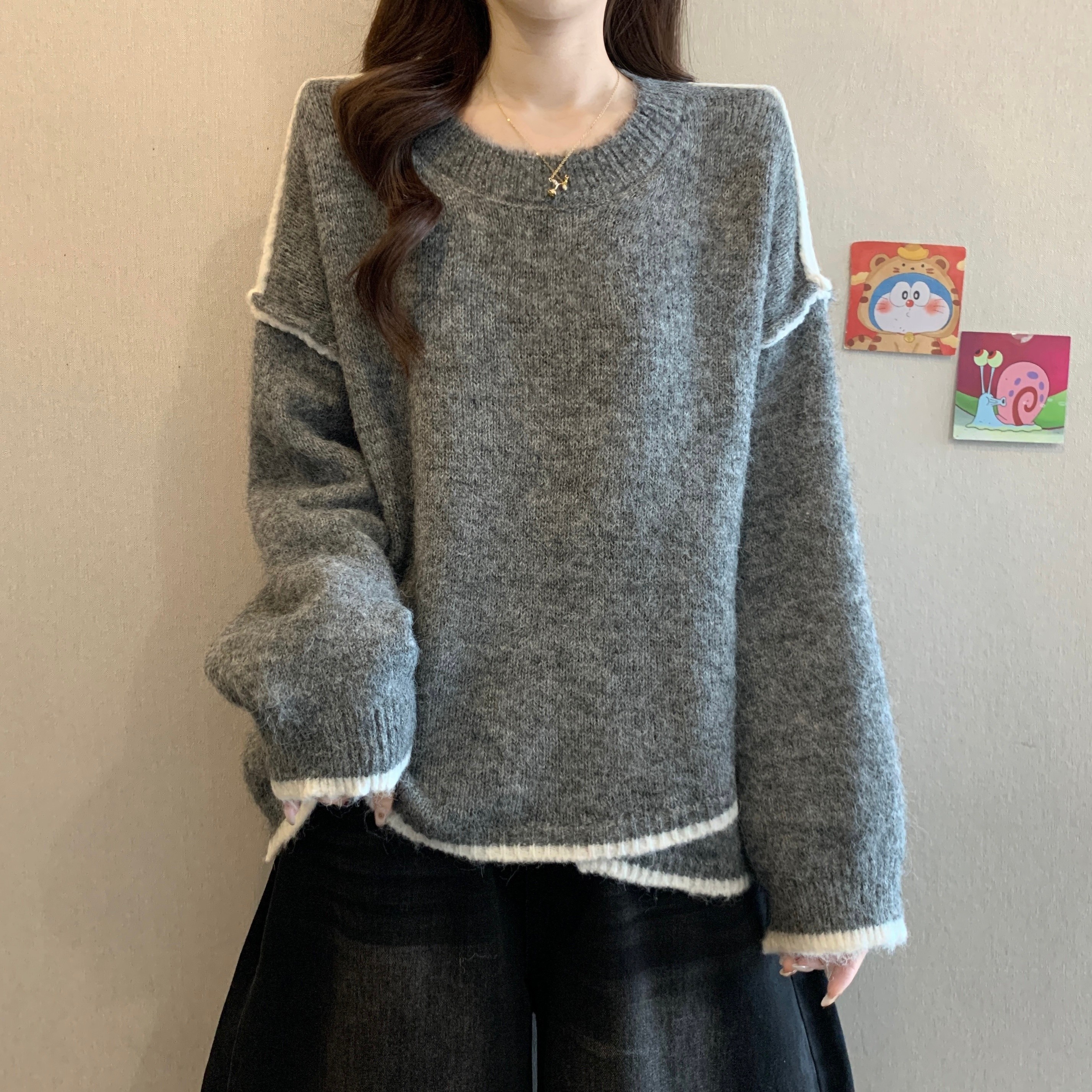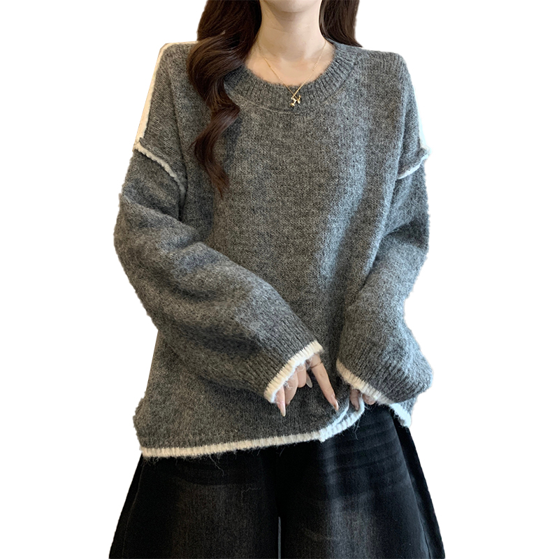 淘宝拾光里的女装铺,宽松慵懒灰色毛衣女装秋