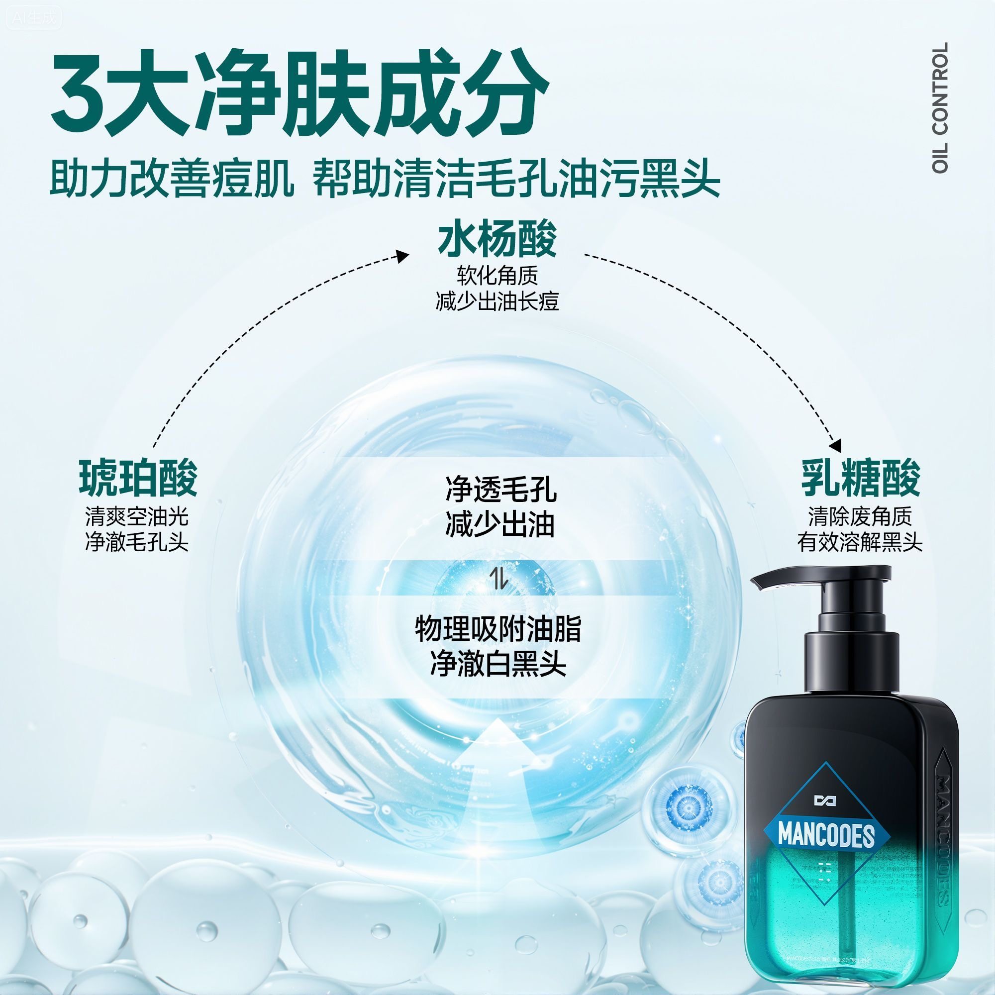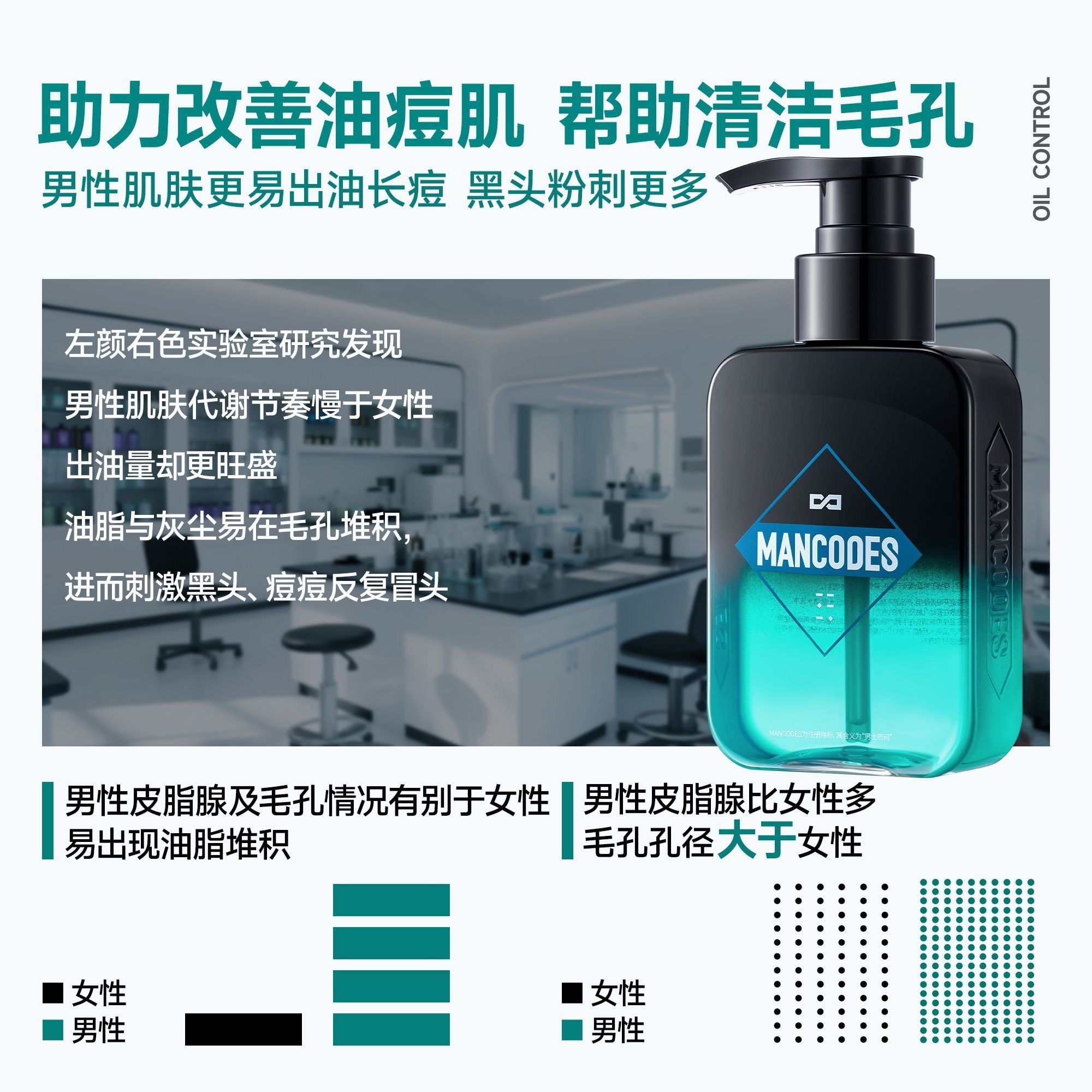 天猫左颜右色基顺专卖店,水杨酸祛痘!男士洗面奶爆卖第1,洗面奶男士专用控油去黑头祛痘氨基酸清爽