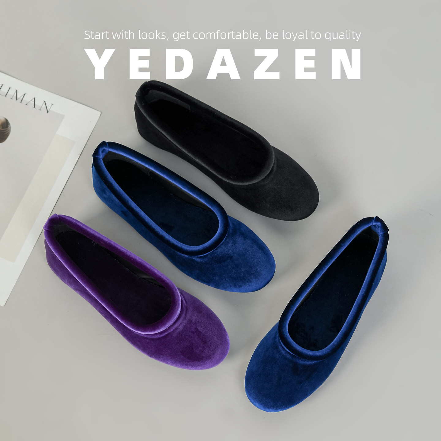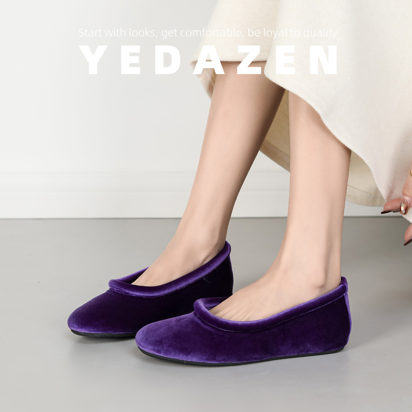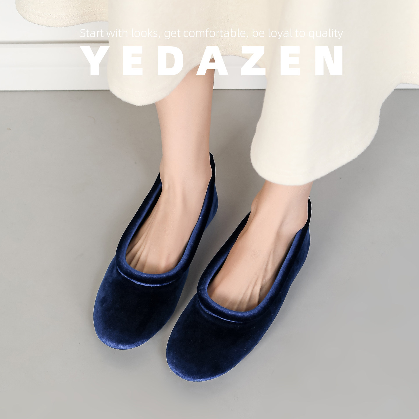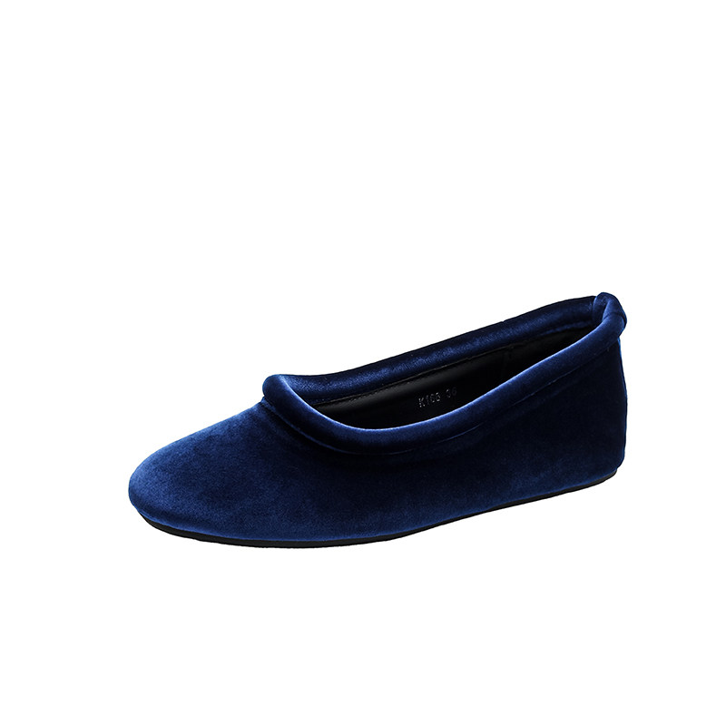 淘宝叶大正 Dazn 女鞋社,韩国丝绒单鞋女平底蓝色芭蕾鞋外穿复古风圆头奶奶鞋2026春季新款