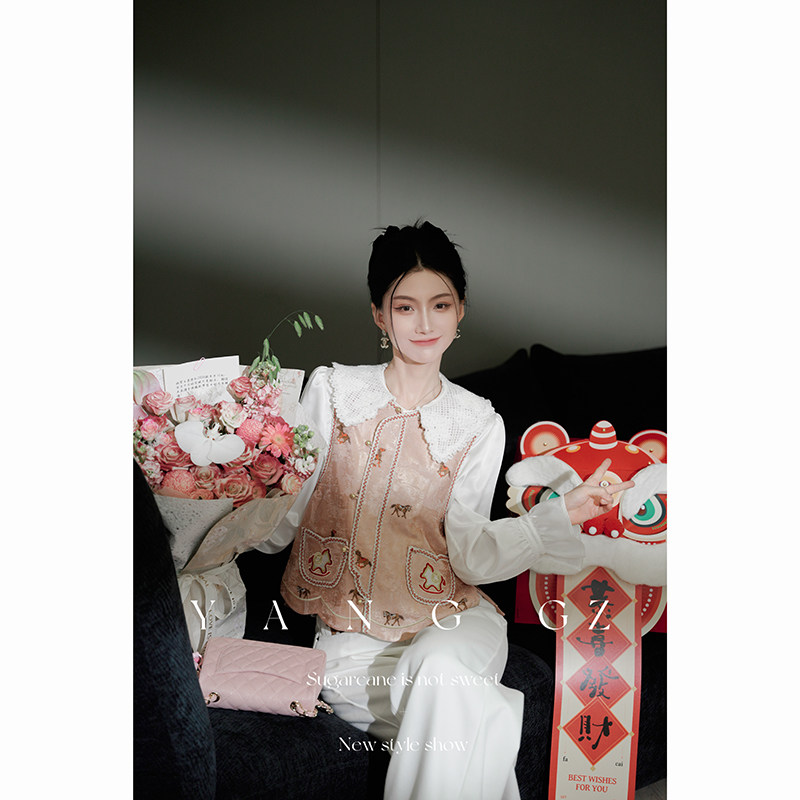 淘宝甘蔗 YANG GZ,新款织带圆领开衫马甲外穿上衣女