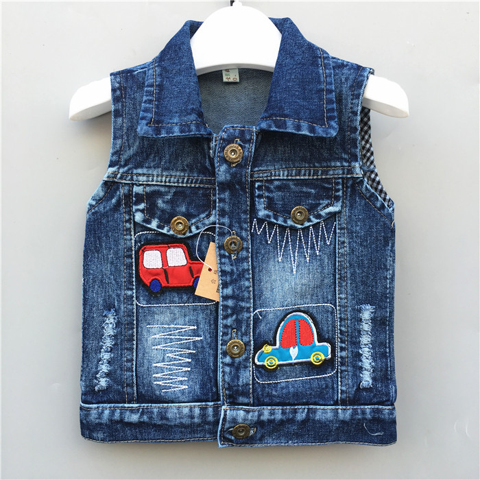 淘宝雪精品童装,儿童牛仔马甲1薄款2春秋新款3男童女童小汽车背心4岁宝宝单层婴儿