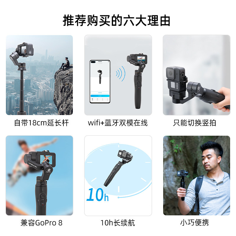 天猫feiyutech五星专卖店,【微瑕疵】飞宇vimble2a三轴手持云台,gopro运动相机防抖便携云台内置18cm延长杆