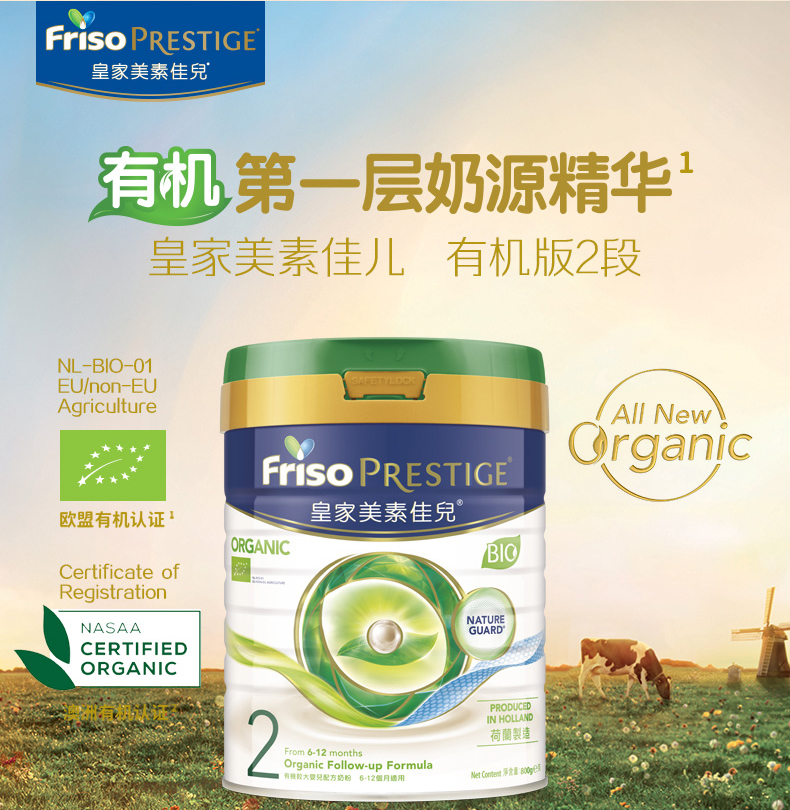 天猫国际自营进口超市,【自营】有机皇家美素佳儿荷兰进口婴儿奶粉2段(6-12月)800g*3罐,欧盟有机认证 第一层奶源精华 凝翠丰富营养