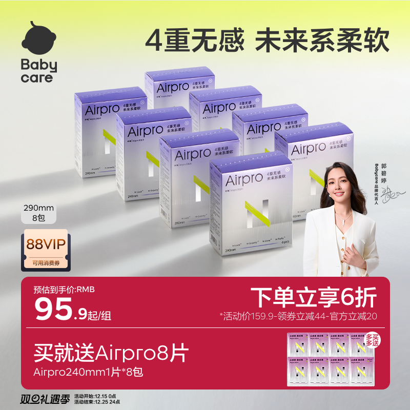 天猫babycare旗舰店,babycare卫生巾Airpro夜用8包,超柔感纤维 四重无感