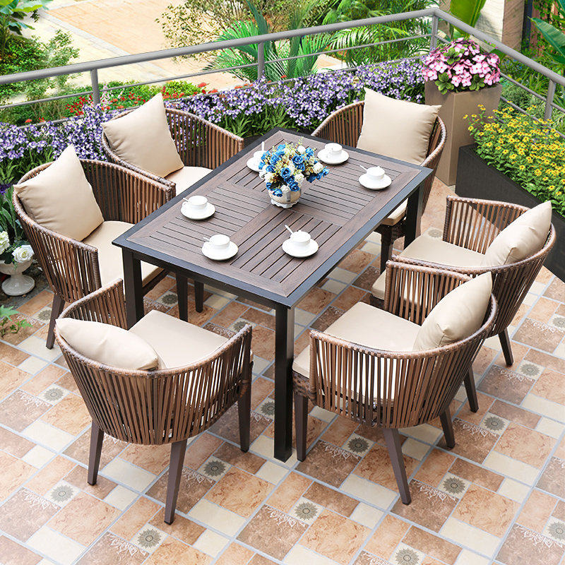 户外庭院家具藤编桌椅露天塑木桌椅