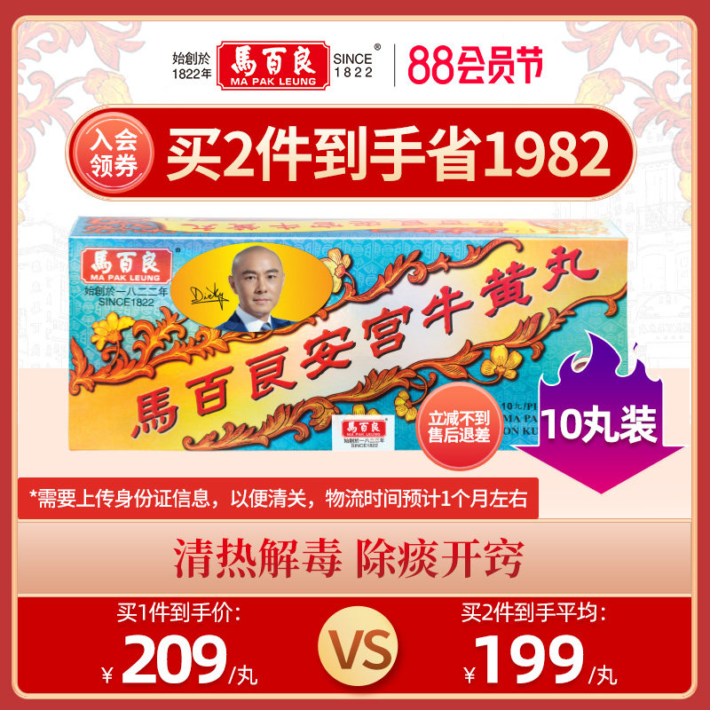 天猫马百良海外旗舰店,中国香港马百良安宫牛黄丸港版安宫丸马百良人正品非代购10丸/盒P,港版正品原装进口 除痰开窍 熄风镇痉